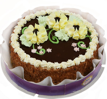2) "Standard" Chocolate cake will be purchased at a local supermarket. Needles to say, that we will select it from those that are available at the moment. So, photos of the chocolates cake at this page are just samples of those that can be purchased. Its decor can be different. Those cakes are producing by various brands, such as Vatsak, Roshen, etc., or it's cakes from a local pastry shops.