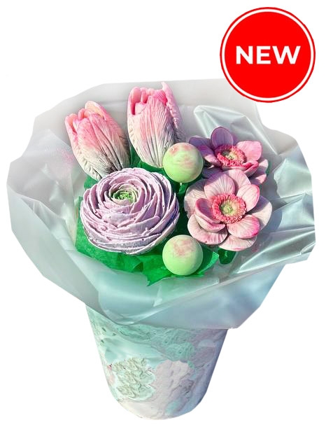- 5 flowers (Ranunculus, Tulips, rose)