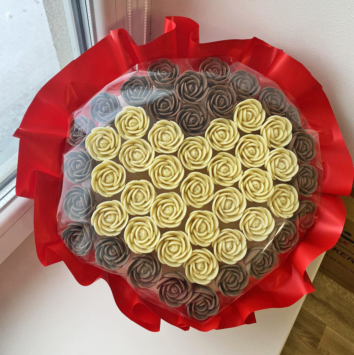 Our highly professional Chocolatier works on the arrangements at a shop and will mail bouquet to our Courier for delivery as soon as it is ready. Needless to say, they such gift should be absolutely fresh and it means that your bouquet will be making after receiving the order. So, please, give us at least 4-5 days to go through all these steps and place order 4-5 days prior of the delivery date.