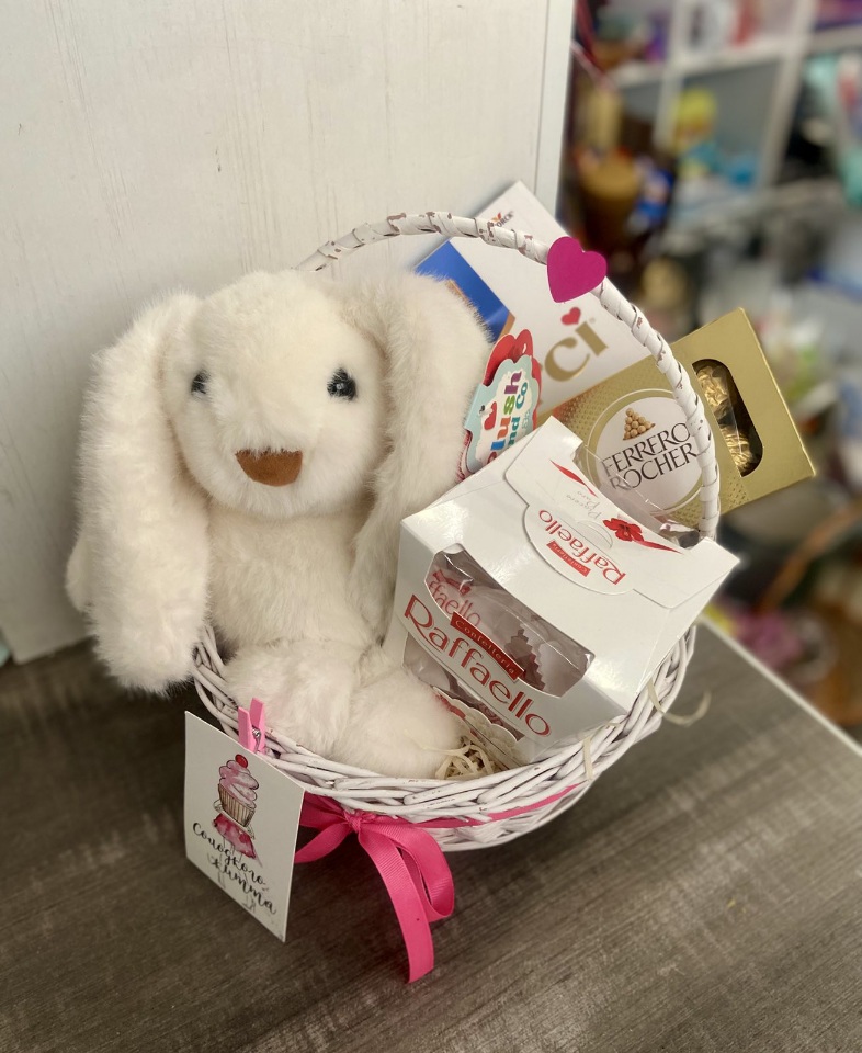 A lovely soft toy - rabbit or another cute one and the best quality chocolate: