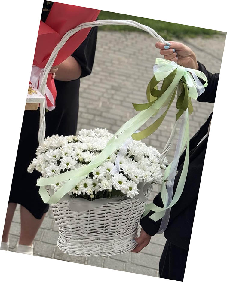 The basket that is shown at our photo is made of 7 stems of chrysanthemums only! Take more and get a really luxury size of flower basket!