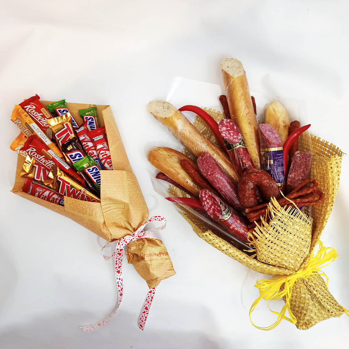 Please, notice, that the made bouquet can look a bit different than the one at the photo. Each desighner makes it using her personal views, taste and decorations. So, it can be a bit different, but at the similar same time look fun, original and ... tasty! Moreover, it happens so, that a newly created and delivered bouquet is even more interesting, funny, bigger and more beautiful than the original one!