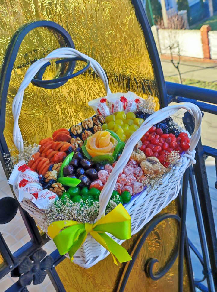 Since we buy all products at the local supermarkets right before making the tasty bouquets, it may happen so, that one or a few ingredients that are at our photo bouquet can be unavailable. We count that our customers realize it and forgive us some substitutions if it will be necessary.