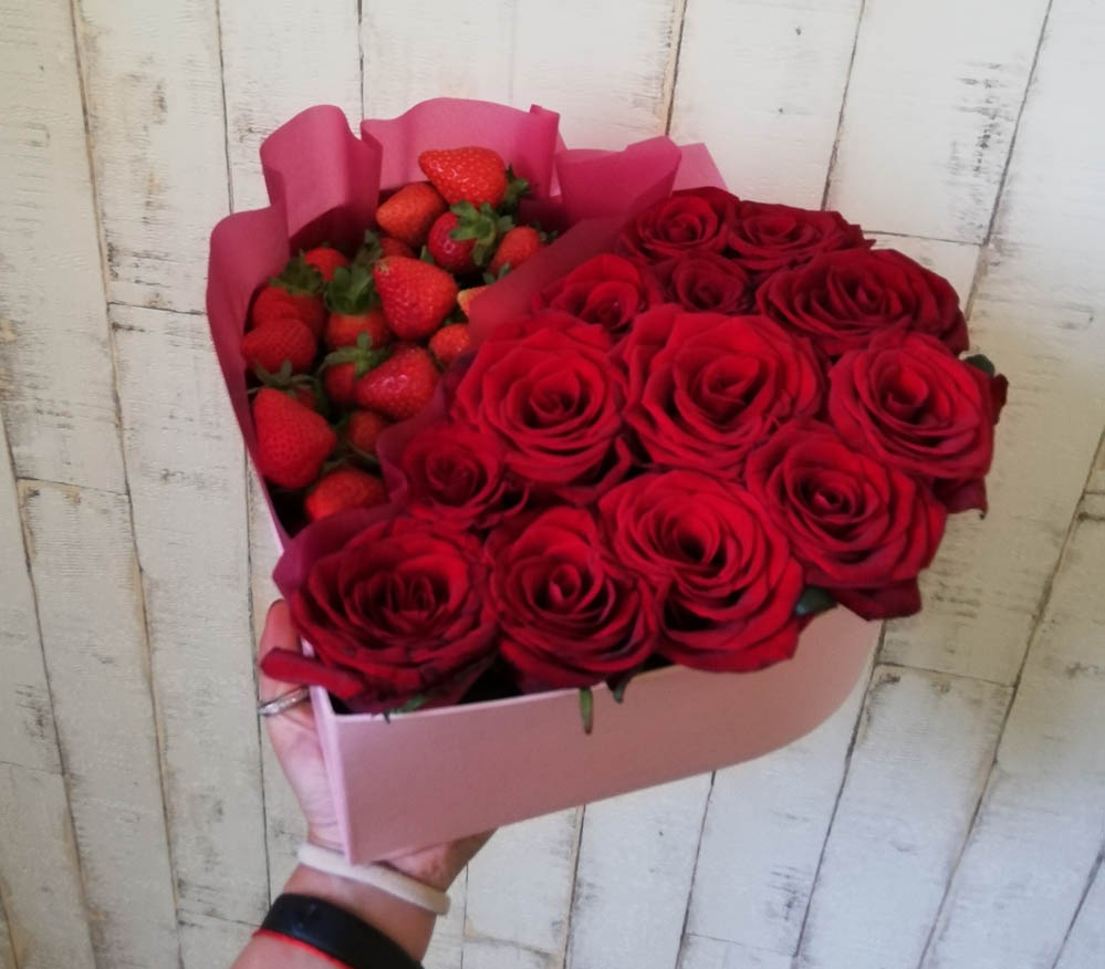 13 x Red roses 600 x grams of strawberries (like at our photo)