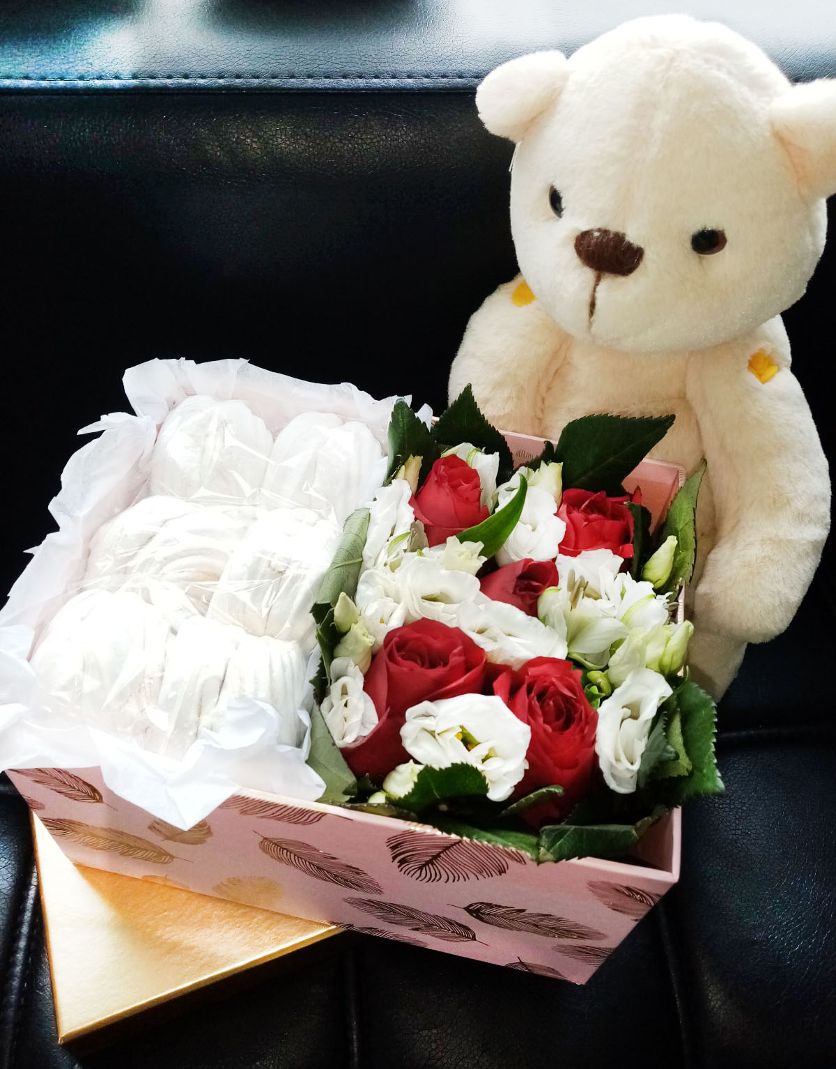 Airy and tasty zephyr in a box with flowers. Extraordinary, unusual, creative gift will be reall pleasure for anyone. Admire the flowers and enjoy the taste of zephyr - is there anything more pleasant?