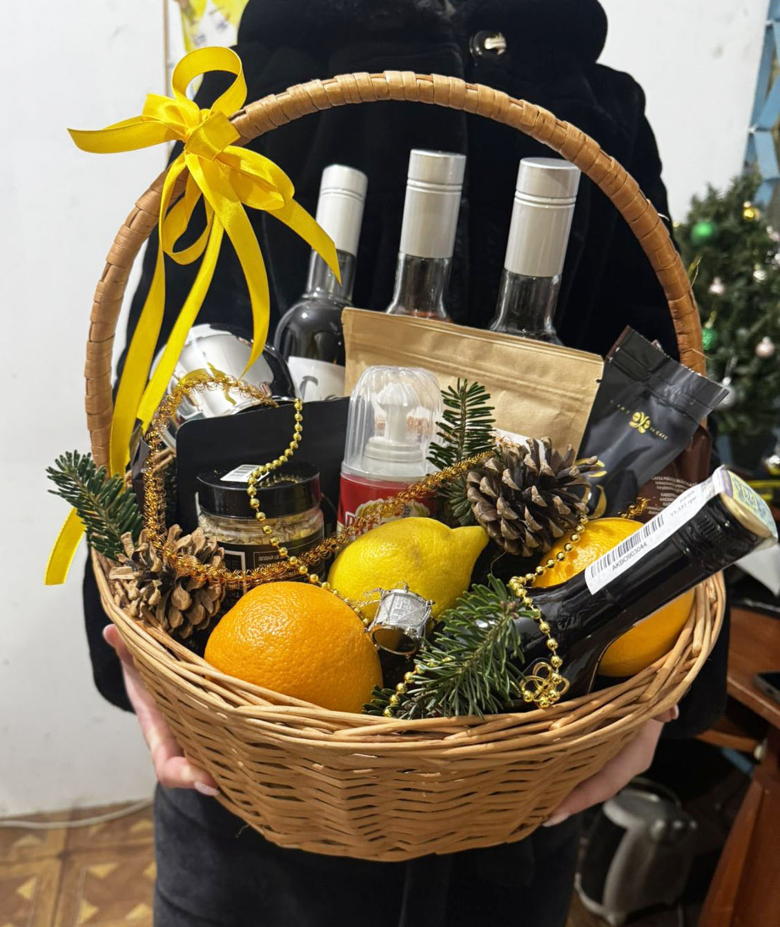 Everything will be packed into a basket and decorated.
