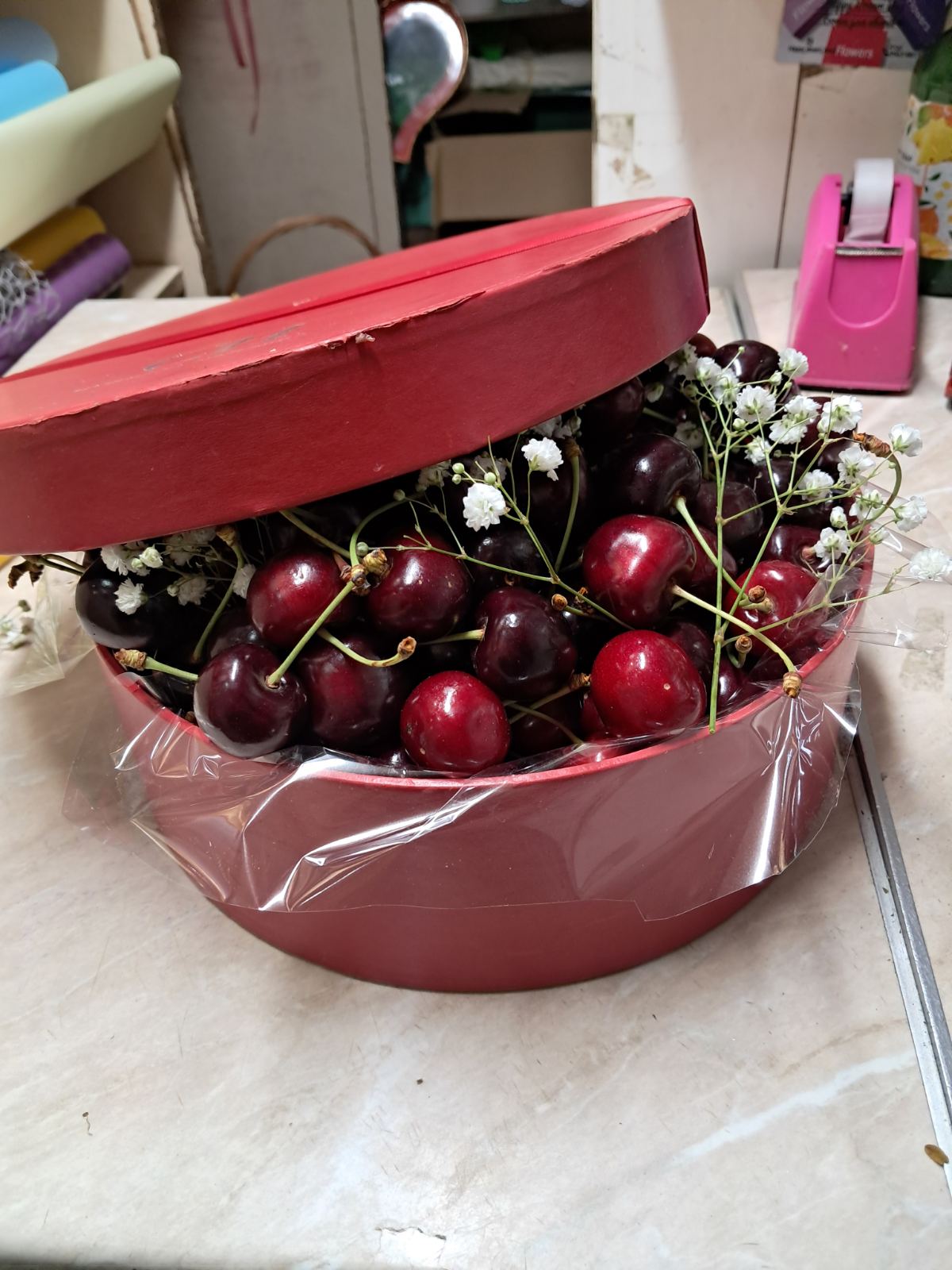 The gift can be arranged either at a basket, or a vase or a gift box - it depends on the choice of boxes at our flower shop at the moment.