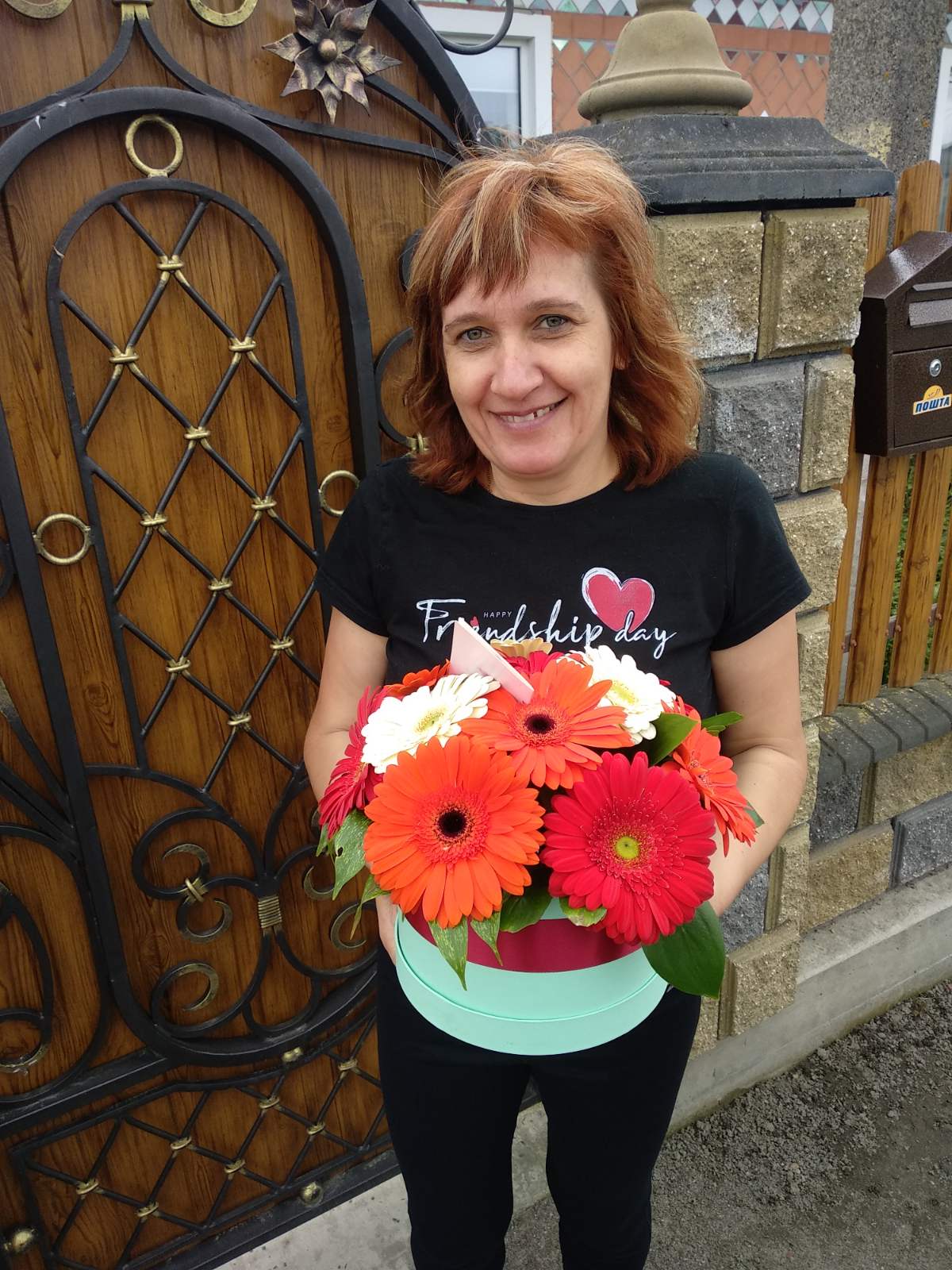 The box color can be different than at this photo (upon availability at the moment at our flower shop).