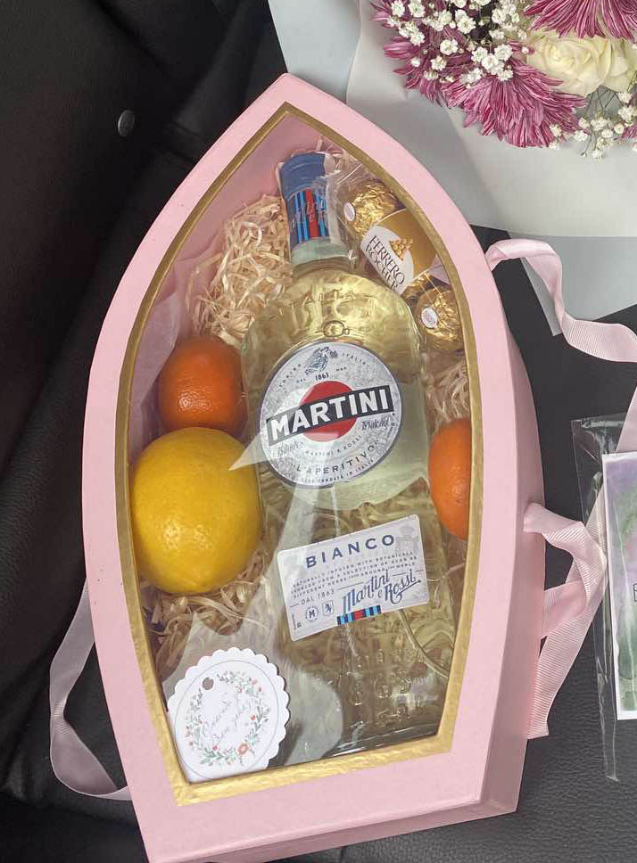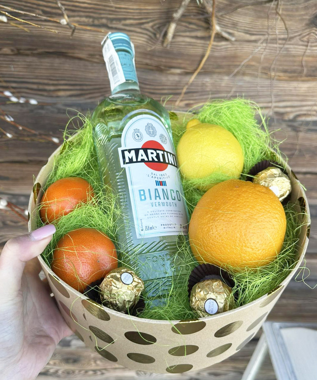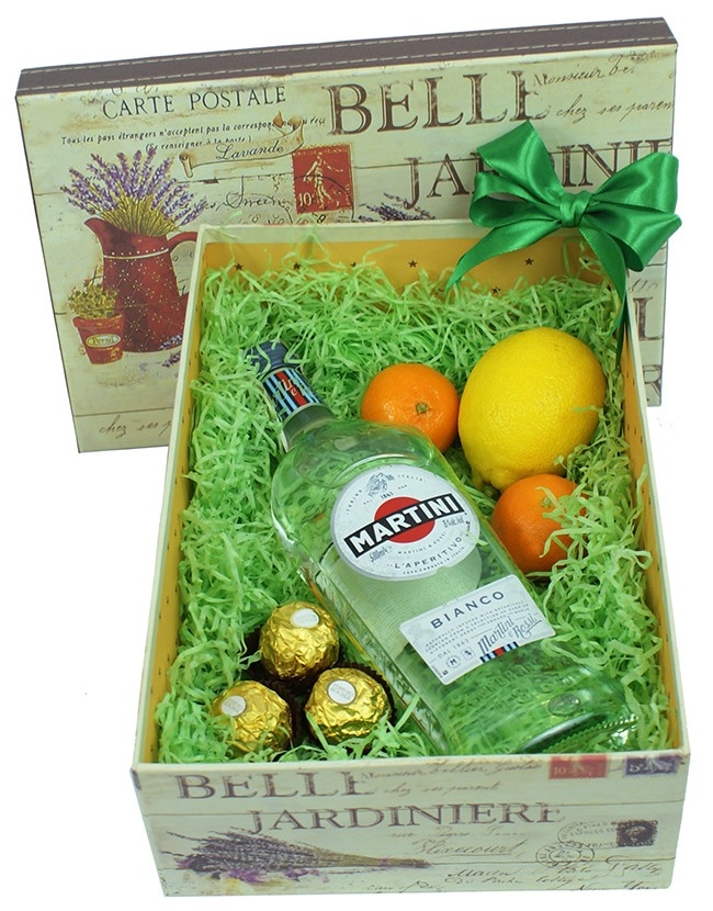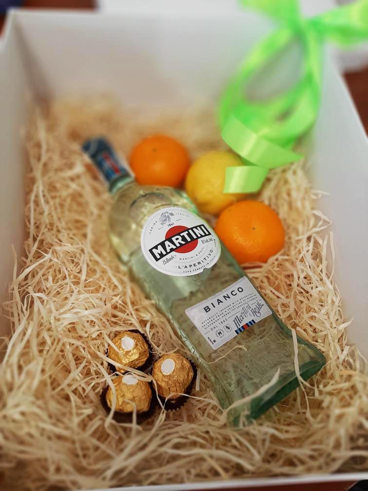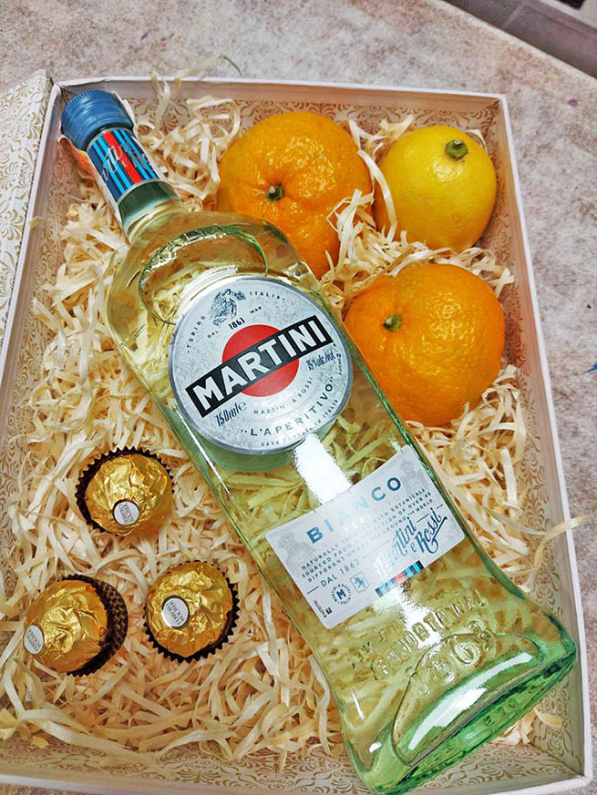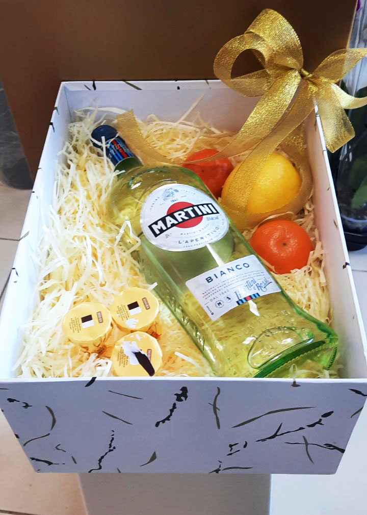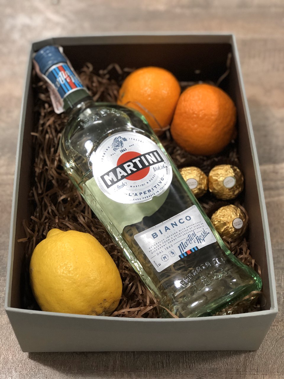 The "Martini Plus" set includes: - a bottle of Martini Bianko 0,75 l