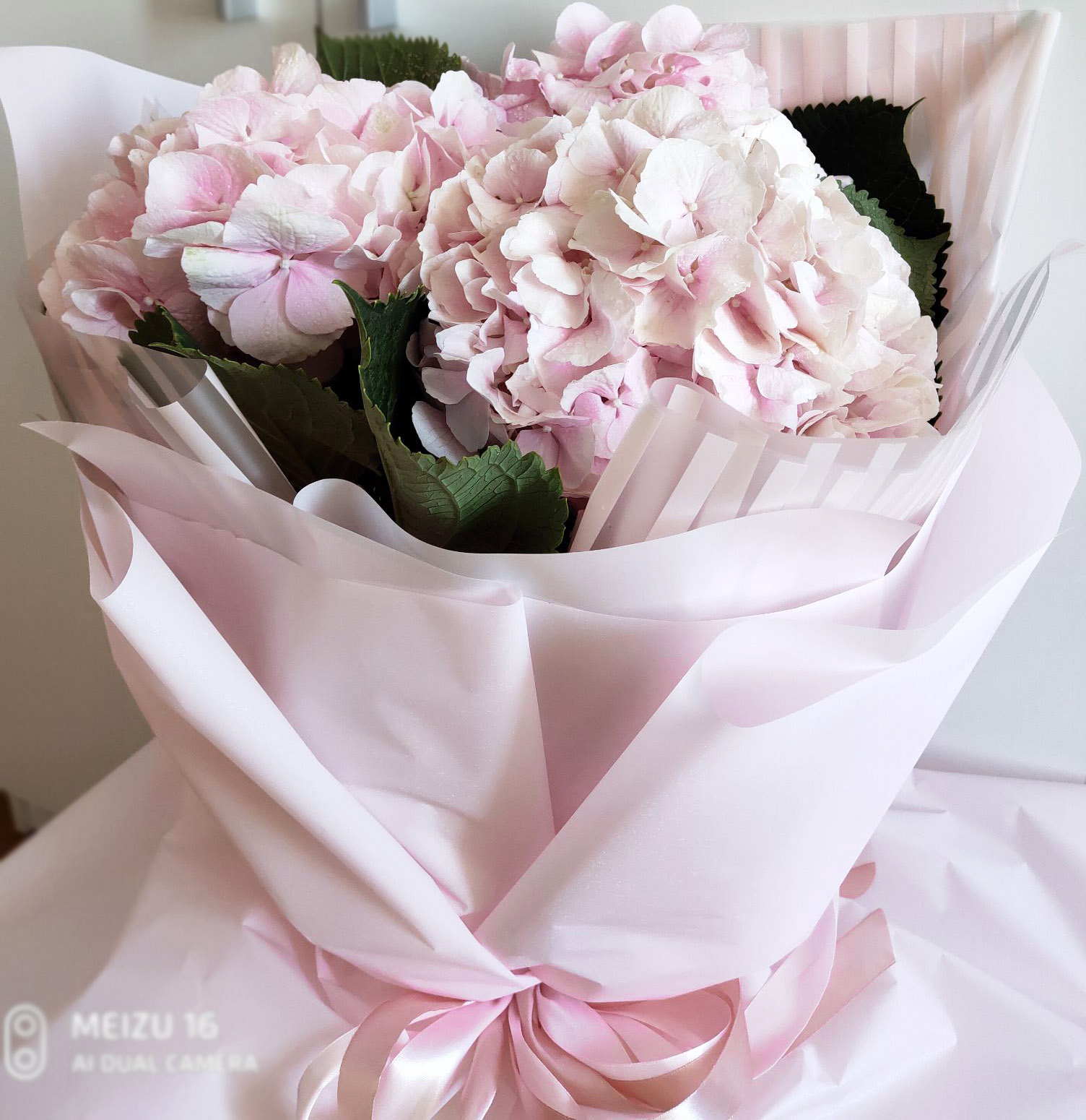 This bouquet has only 3 Hydrangea but each of them consists of hundreds of inflorescenceű making a big ball of 12-18 cm diameter!