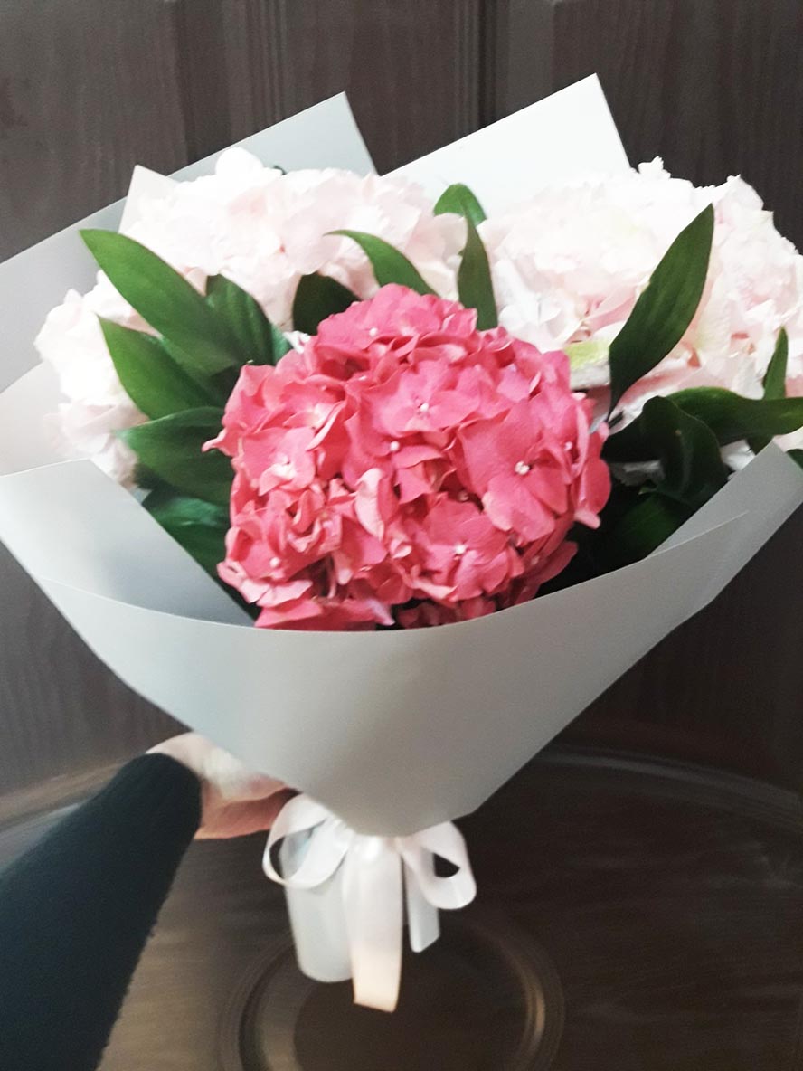 Hydrangea blossoming period is June till the end of October. Please, order this booket at this period only.