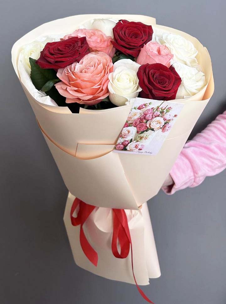 These red, white and golden roses cheer up and expressively showing your love and devotion to the one it is meant for.