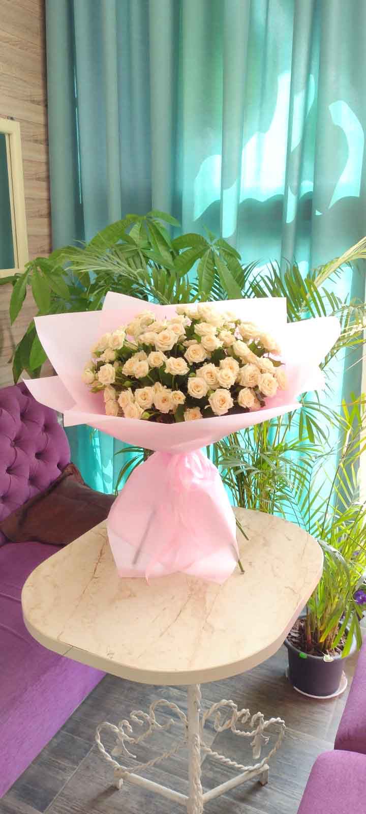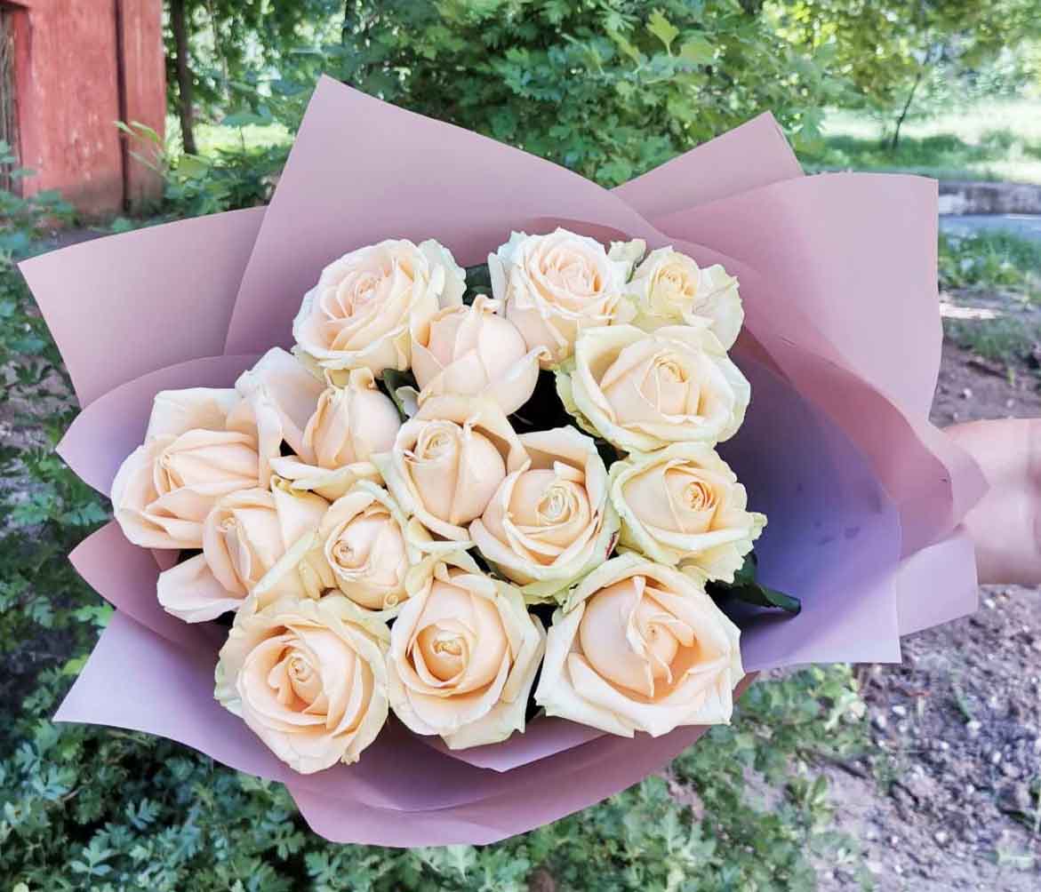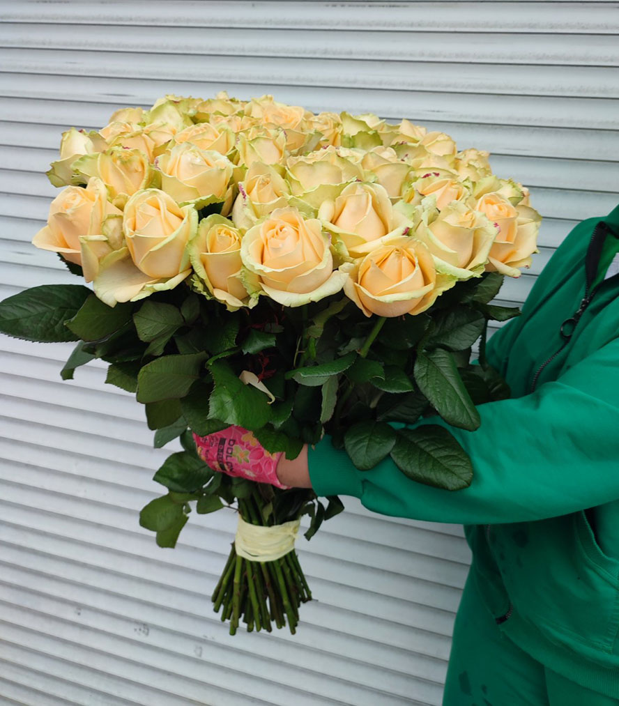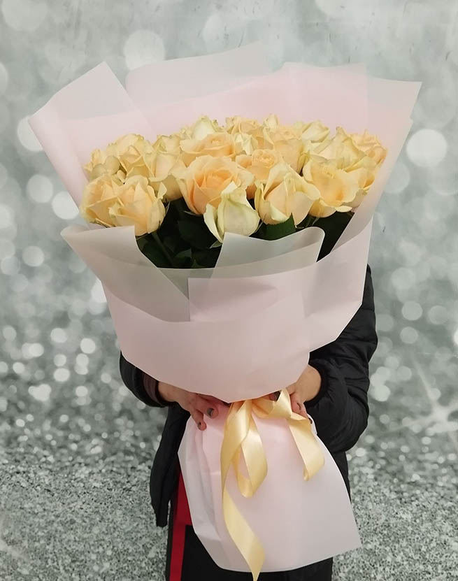 At this page can be ordered bouquets of peach roses of 60-70 cm stems.