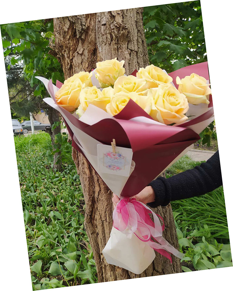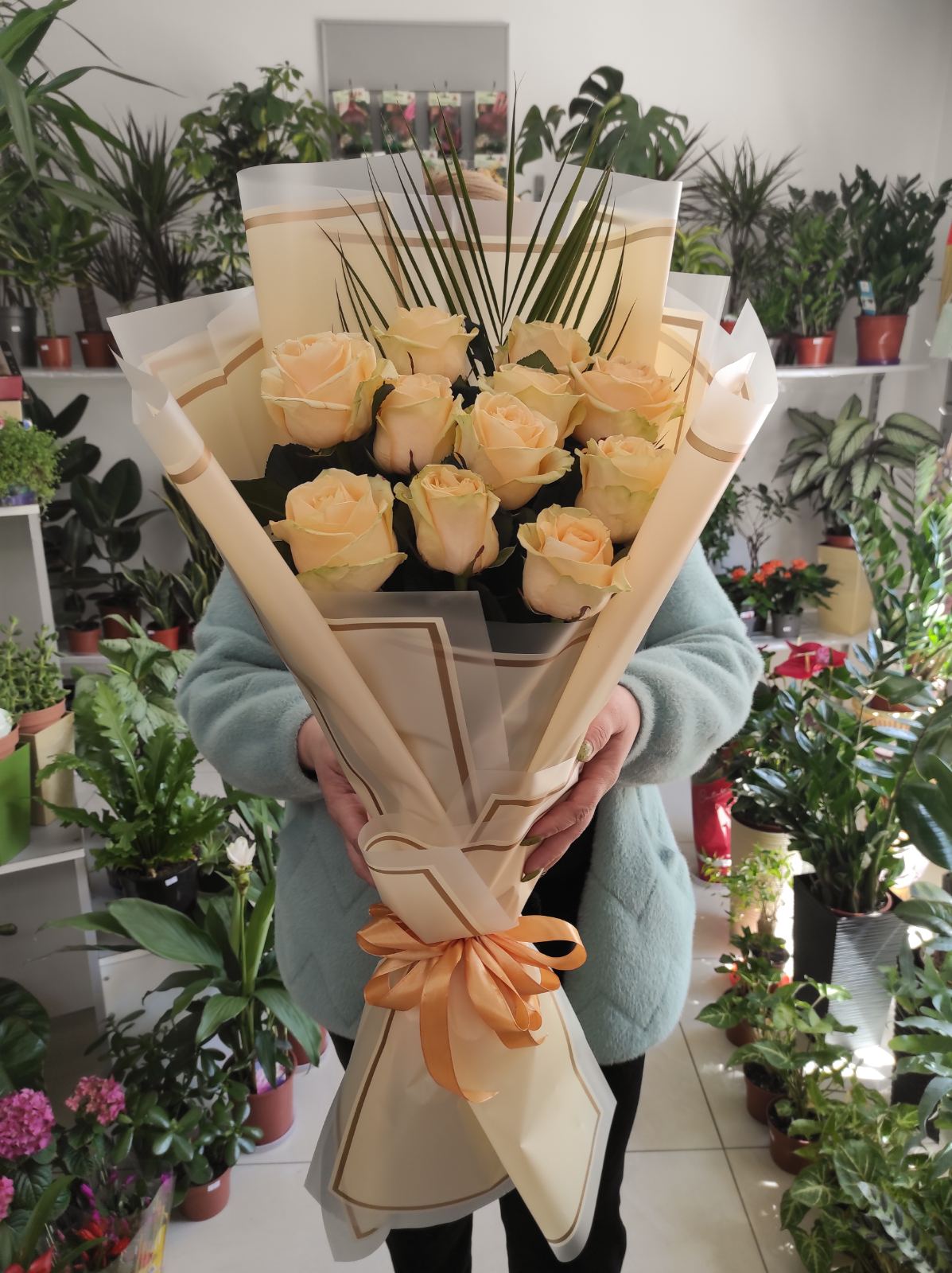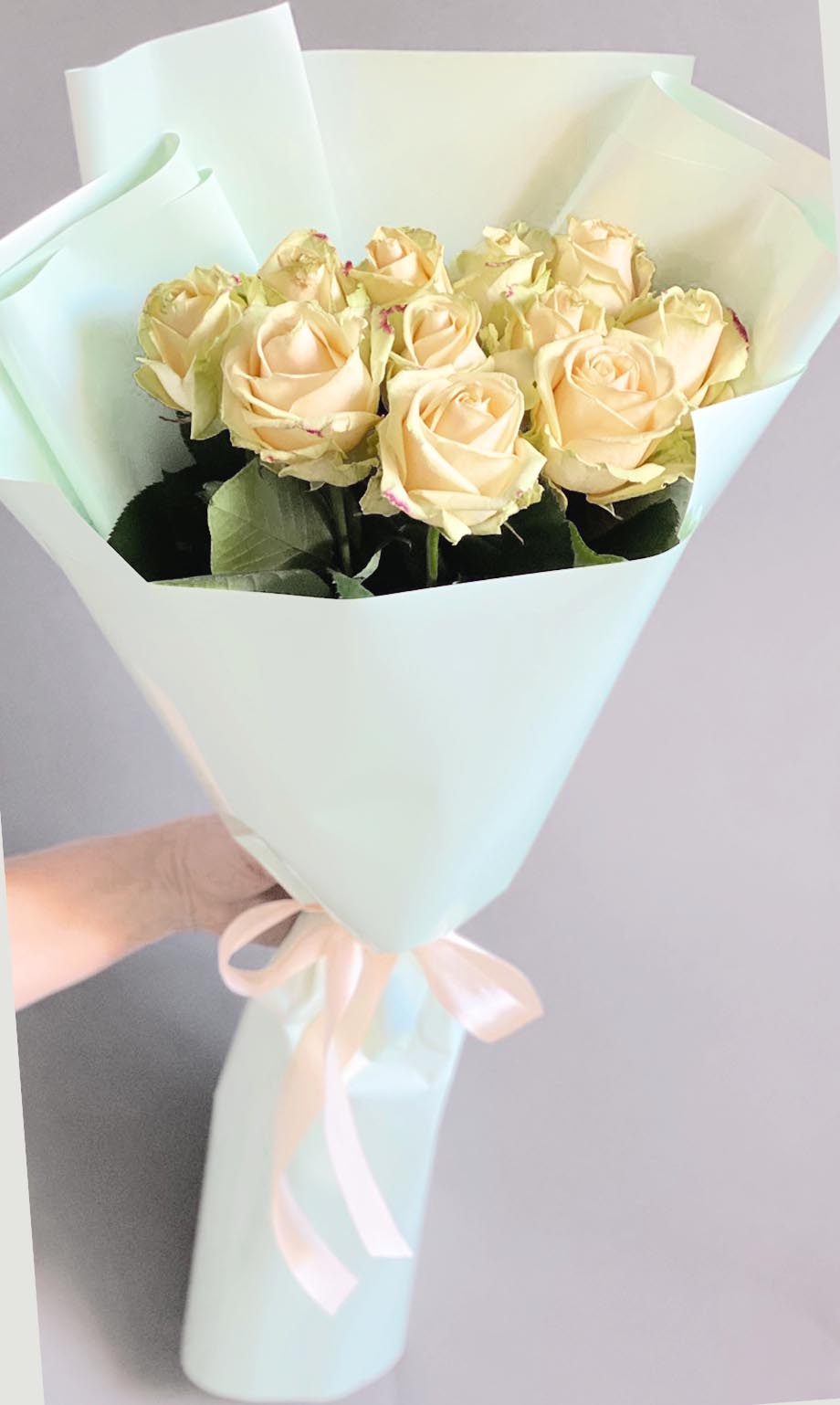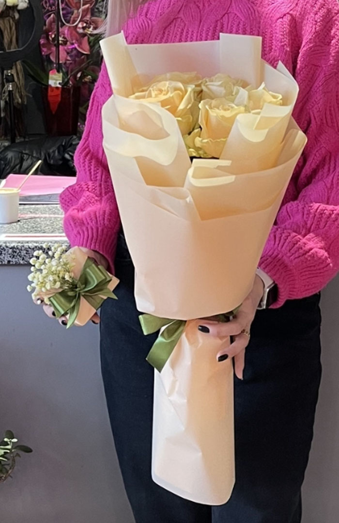 At this page can be ordered bouquets of peach roses of 60-70 cm stems.