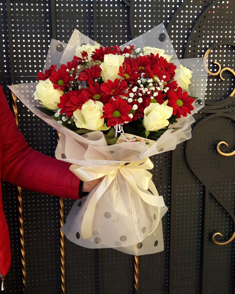 We offer 3 sizes of this bouquet for your choice. Our main photo shopws the "Small" option, but you can choose a bigger size as well.