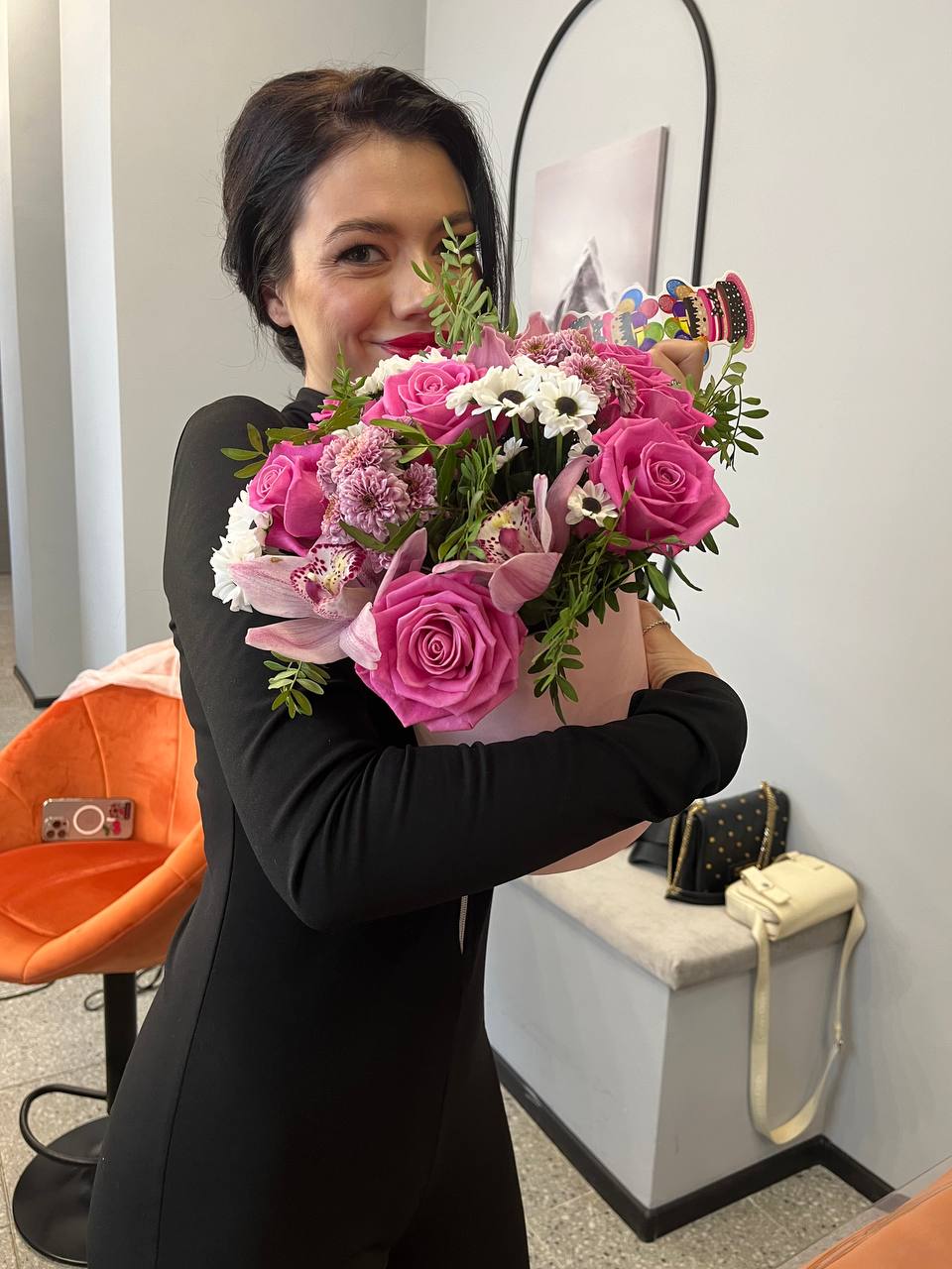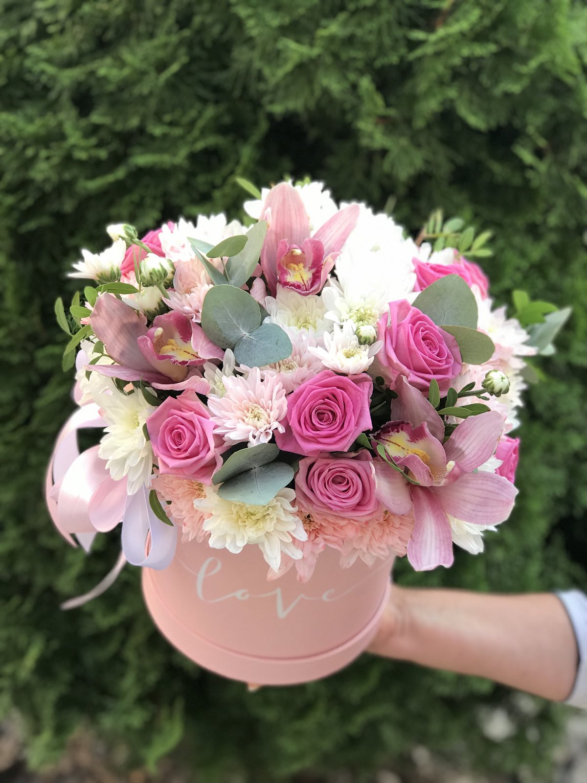 A tender mixture of so touching flowers - always fresh and new way as one cannot make two identical arrangements. They will be always unique and beautiful. Luxury Orchid always attracts eyes. It is a large elegant flower that always become a center of any arrangement.