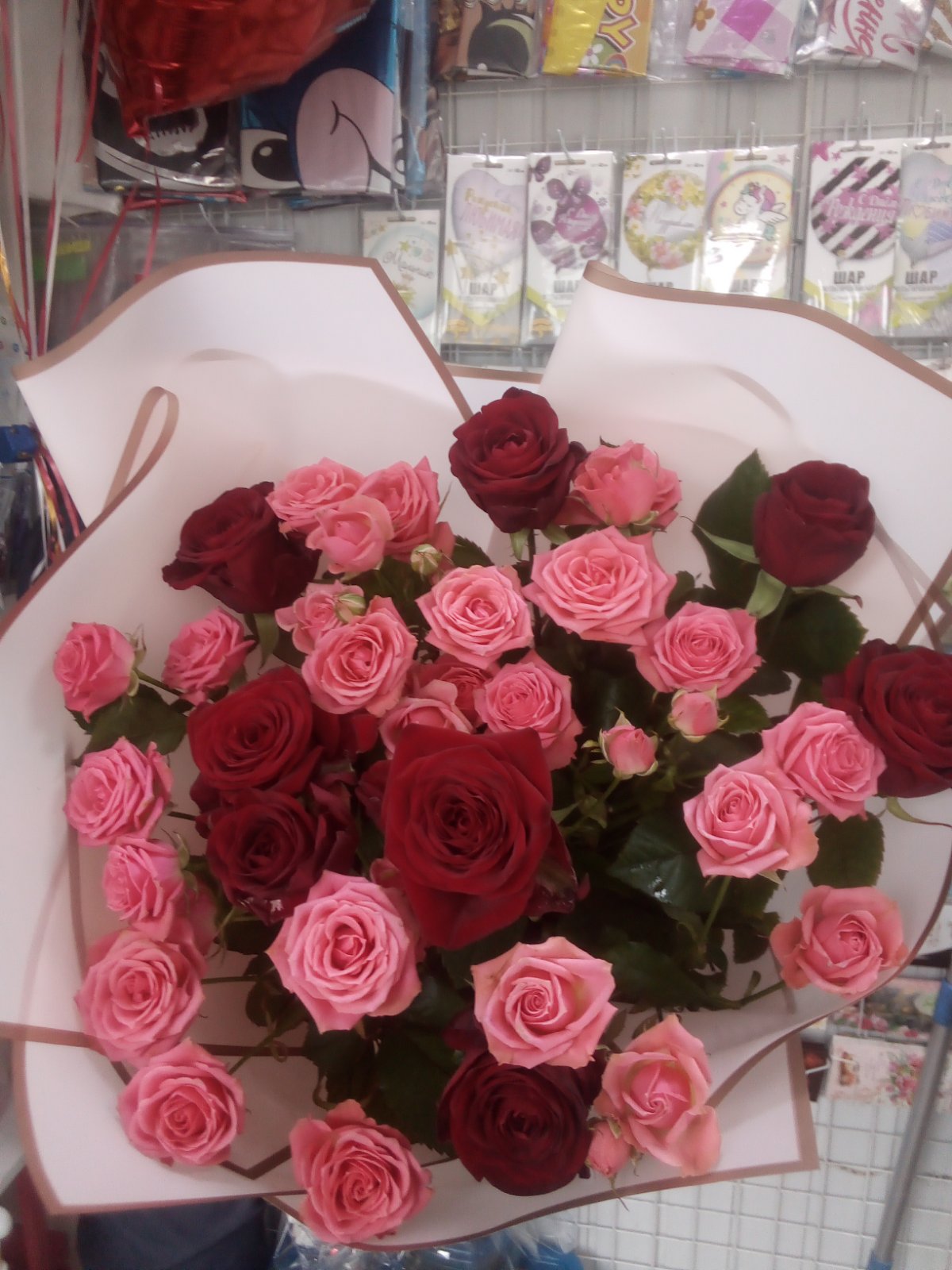The color of wrapping also will be chosen from the salection that is available at our shop at the moment. We might bet that you'll be satisfied ))