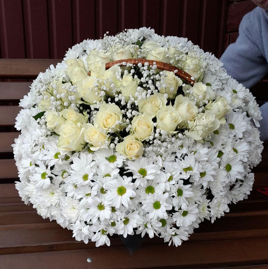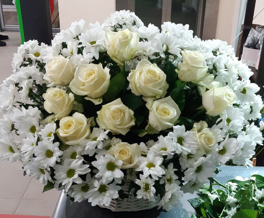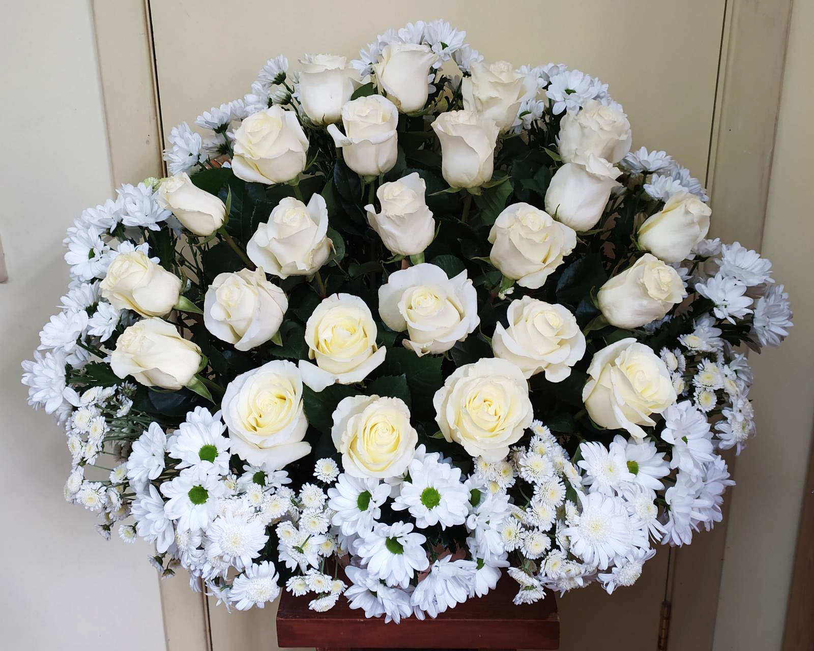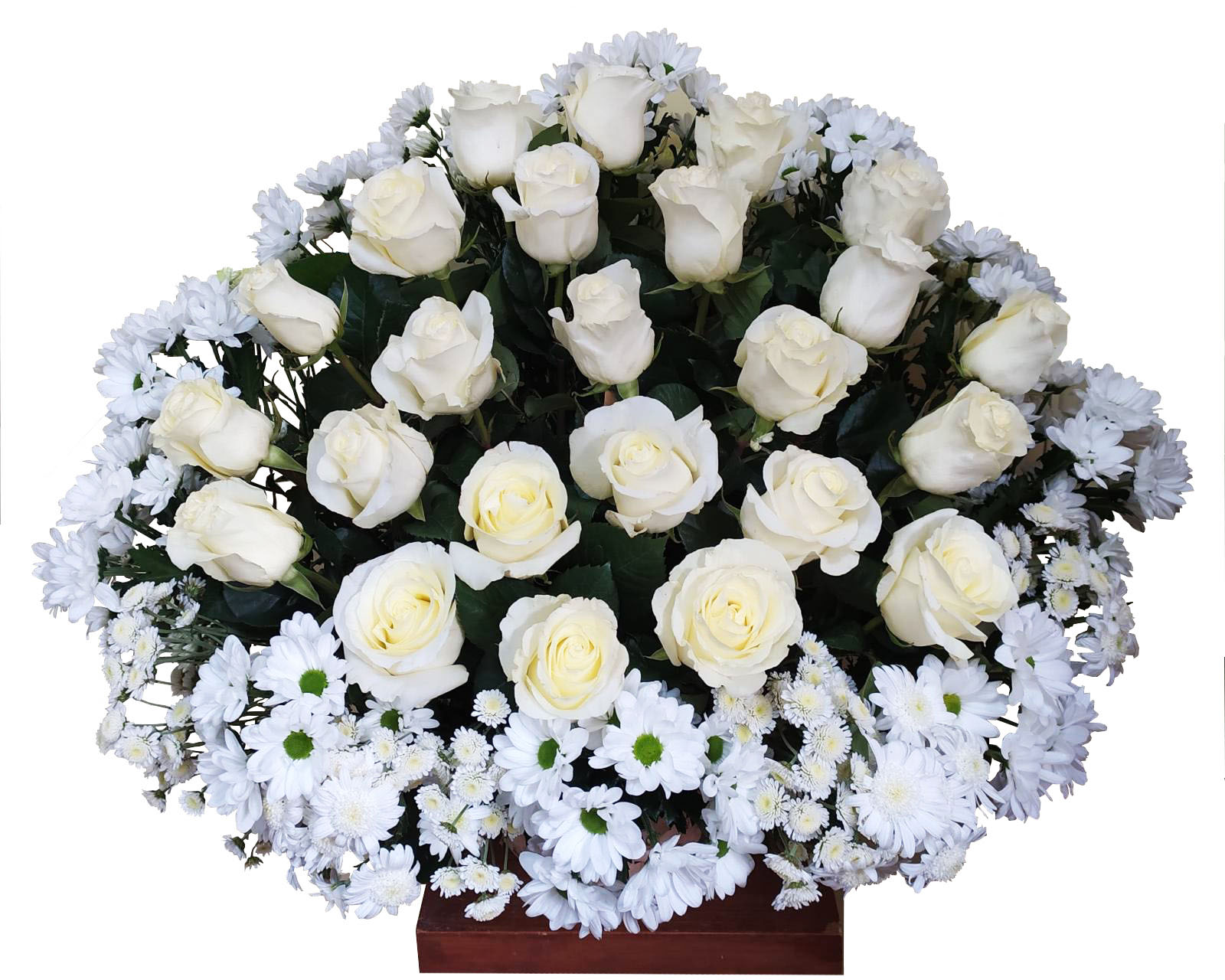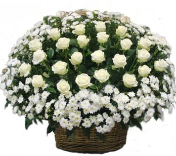 4) Premium: 36 white roses + 54 white chrysanthemums