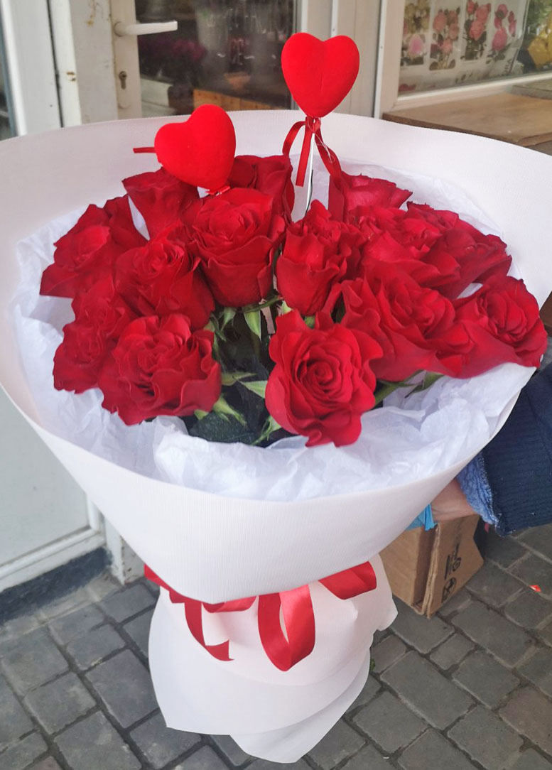 ATTENTION, pls! Special hearts for bouquets might be unavailable at some periods at our flowers shop. At such case we'll add any other heart as substitution, for example: heart shaped balloon, or chocolate heart, etc.