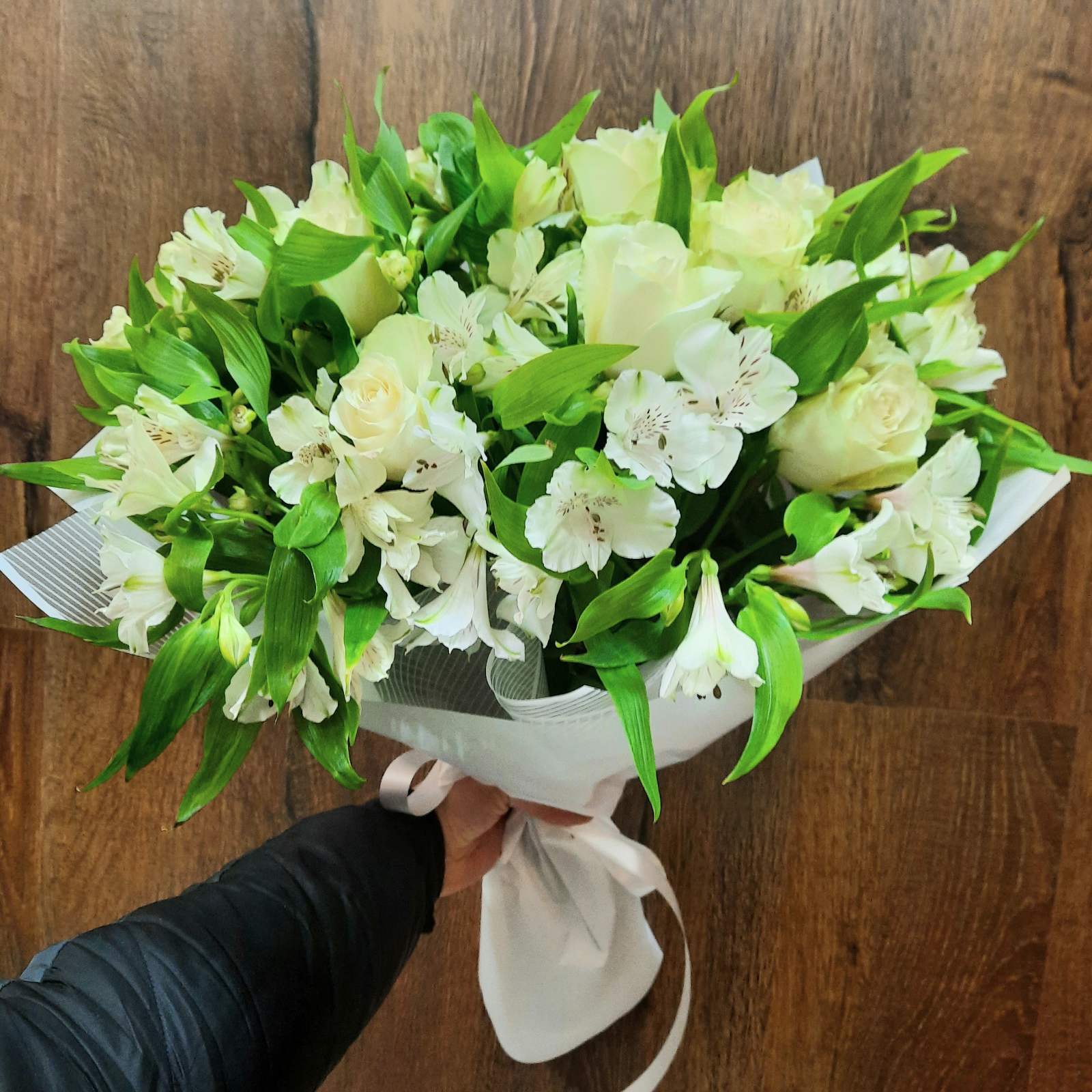 White color flowers are associated with purity and grace. This extra class bouquet gives an impression of luxury as well. Flowers are of a highest quality and class.