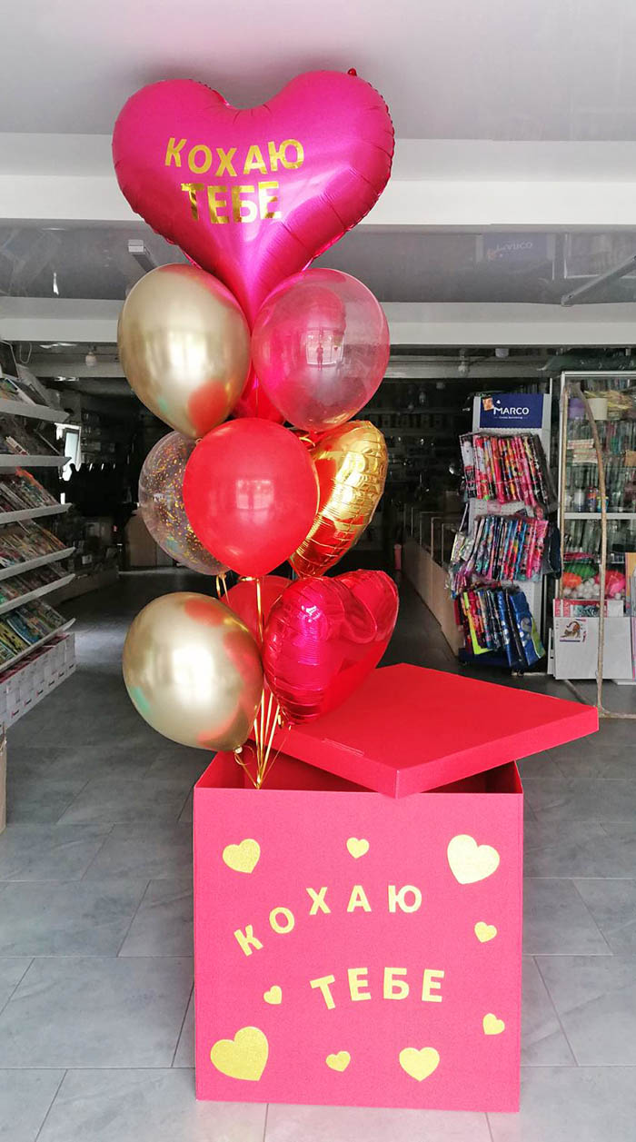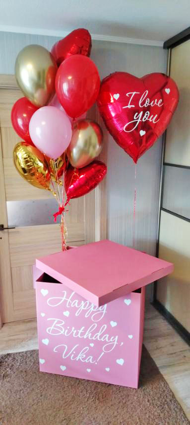 Романтичный подарок-сюрприз: большая коробка доставляется получателю. Она открывает ее и... шарики вылетают!! Однако они не улетят в небеса, так как к ним будет прикреплен специальный утяжелитель.
