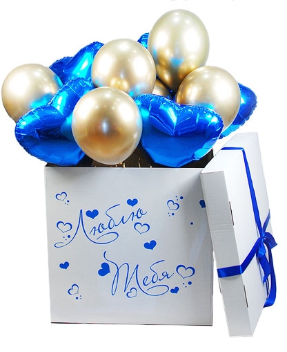 Такой сюрприз действительно может взорвать эмоции, дать ощущение радости и праздника. Как? Дело в том, что курьер привозит получателю просто большую коробку. Что в ней? Получатель открывает коробку и... оттуда вылетают шарики! Но в небо они не улетят, так как есть специальный грузик, который их удержит. Цвет коробки и шариков такой, что подойдет для мужчины любого возраста. Здесь латексные шарики и фольгированные сердца, без лишних слов означающие ЛЮБОВЬ!