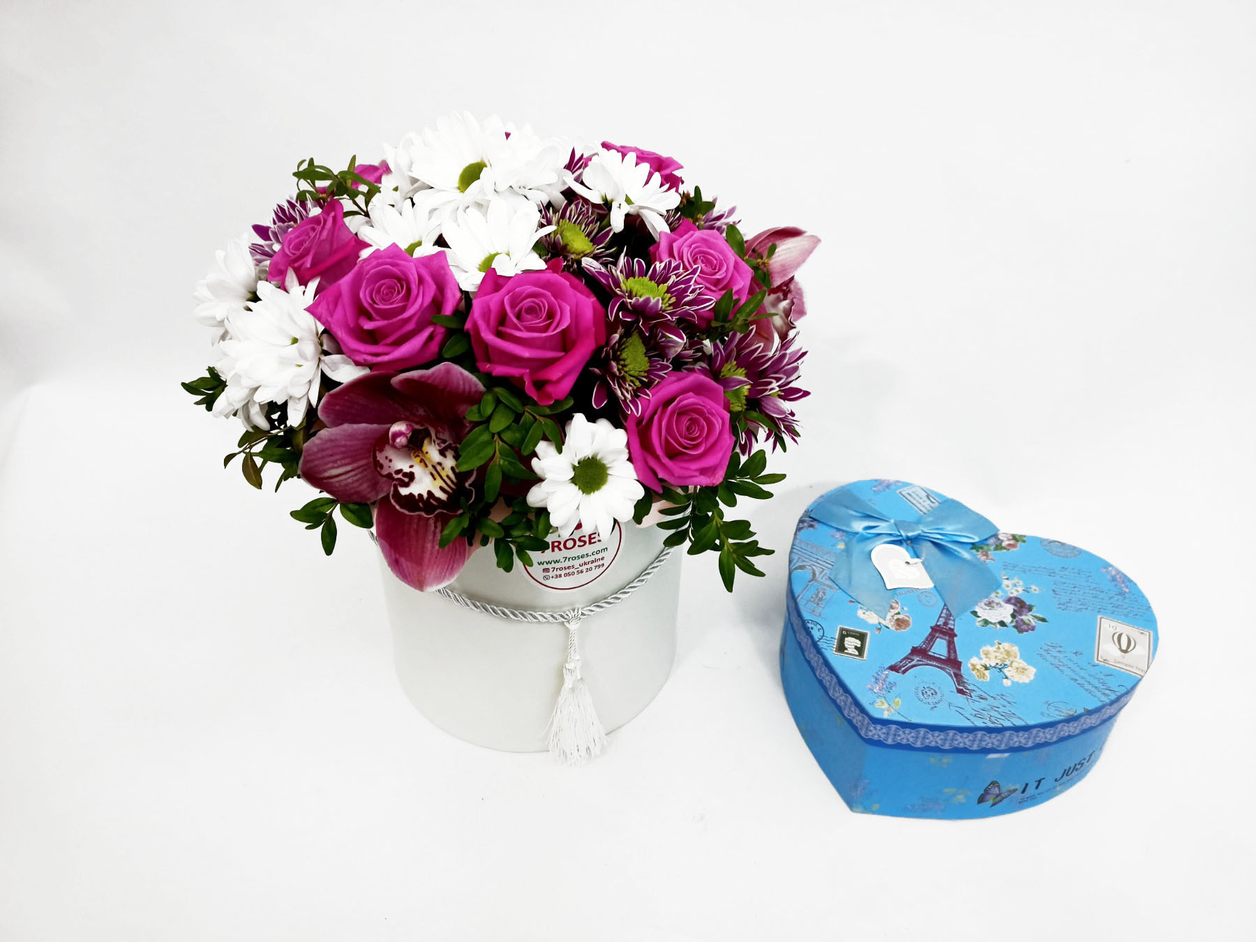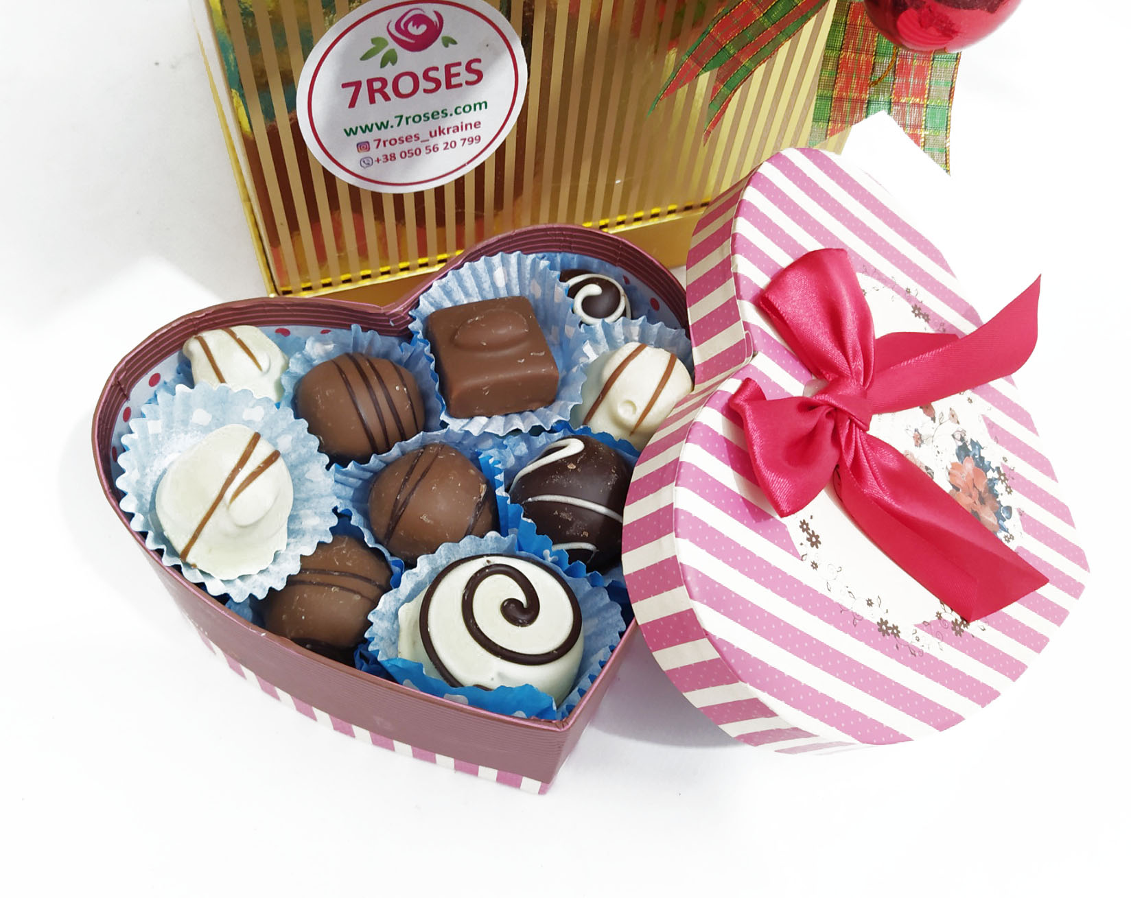 ВАЖНАЯ ИНФОРМАЦИЯ: Мы - цветочный магазин и покупаем этот подарок в местных магазинах как обычные покупатели. Такие вкуснейшие шоколадные конфеты ручной работы производятся только в нескольких местах Украины и мы перешлем их в наш цветочный магазин для доставки. Это ничего не стоит дополнительно.