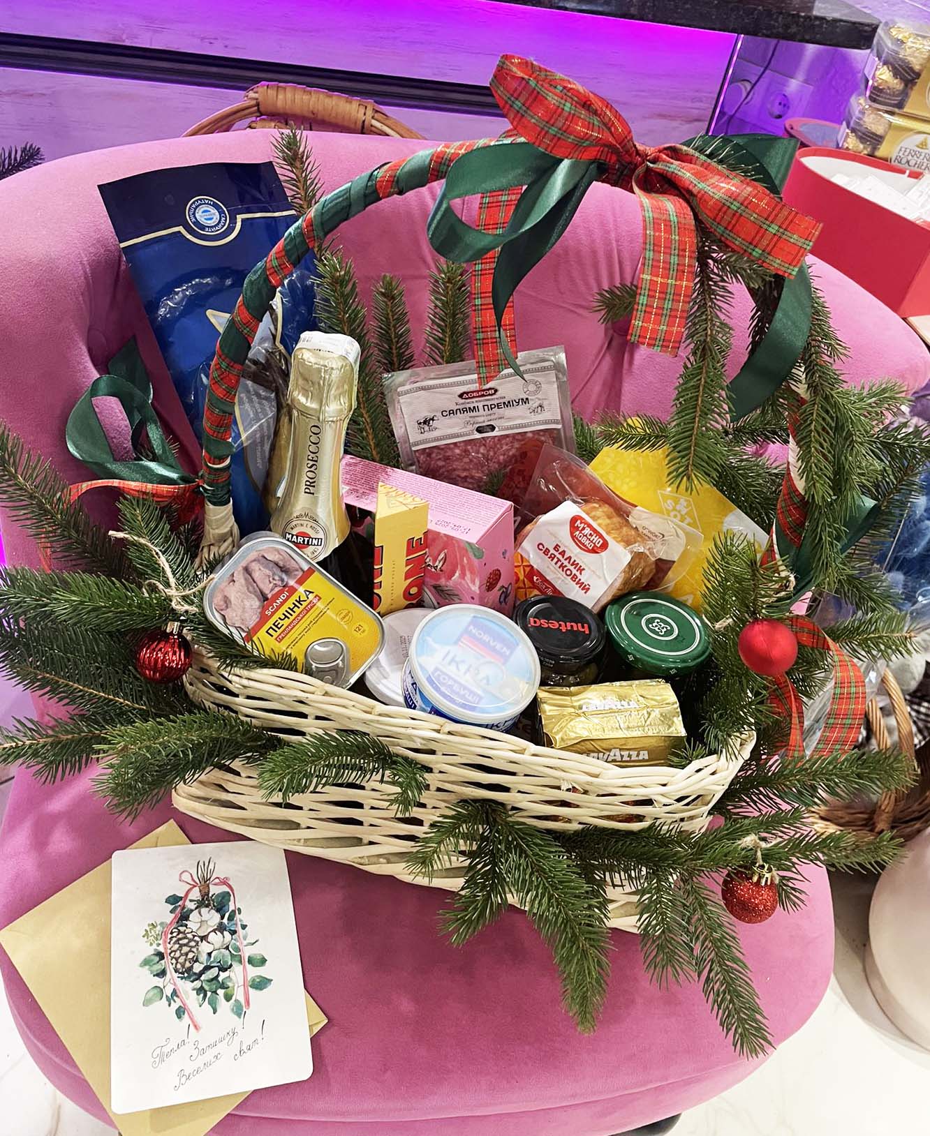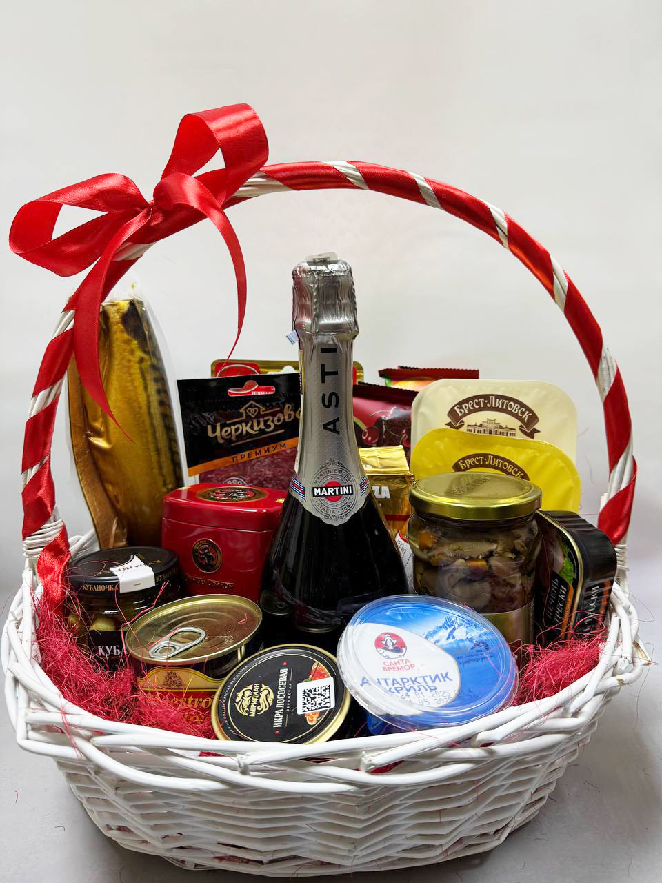 Пошлите ваше чудесное настроение с этой удивительной подарочной корзиной, наполненной праздничными деликатесами, соблазнительным шоколадом, и прекрасным шампанским Мартини!