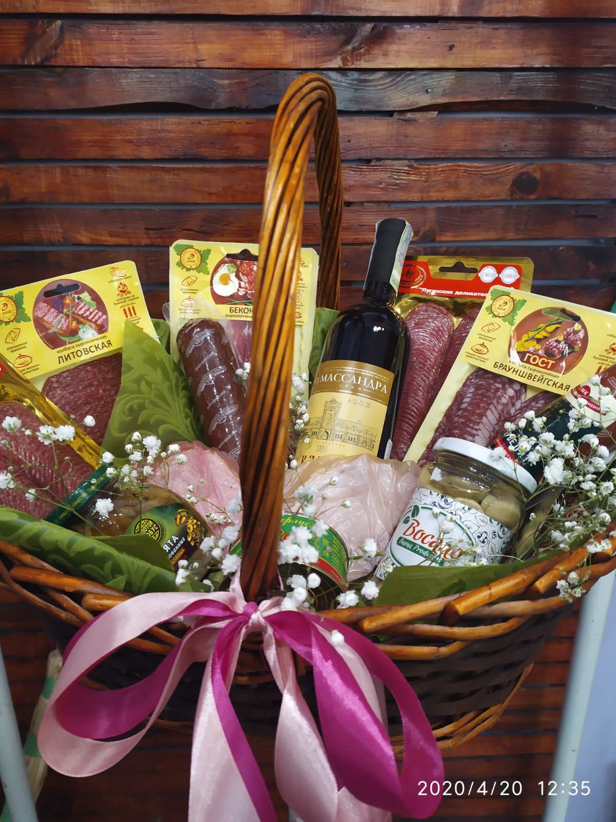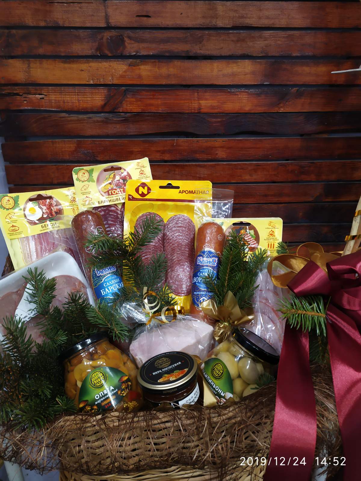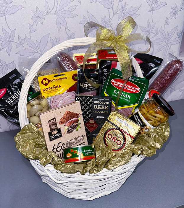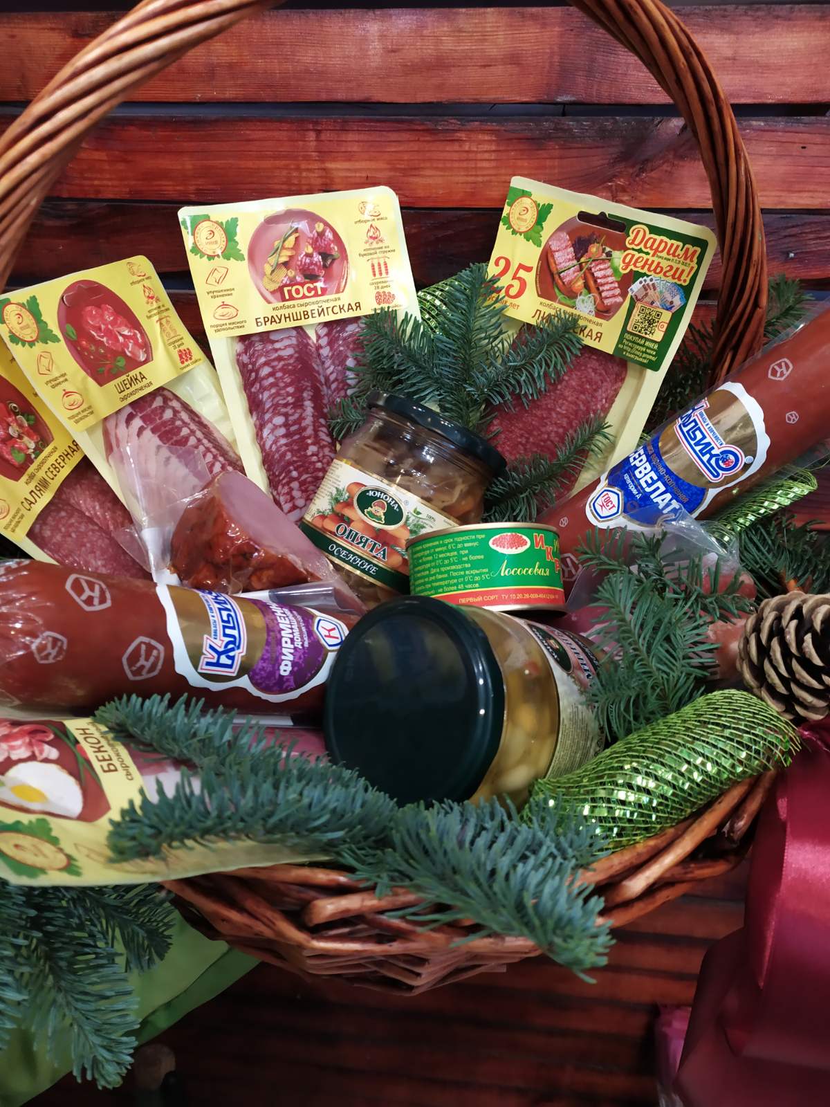Корзина мясных деликатесов может быть отправлена в любое время года. Если вы заказали эту корзину деликатесов не к Новому году или Рождеству, новогодний зимний декор будет заменен на другой, соответствующий сезону (живые цветы, сухоцвет, банты, сердечки и т.п.). Наши флористы-дизайнеры чутко чувствуют и понимают в каких конкретных случаях какие украшения использовать.