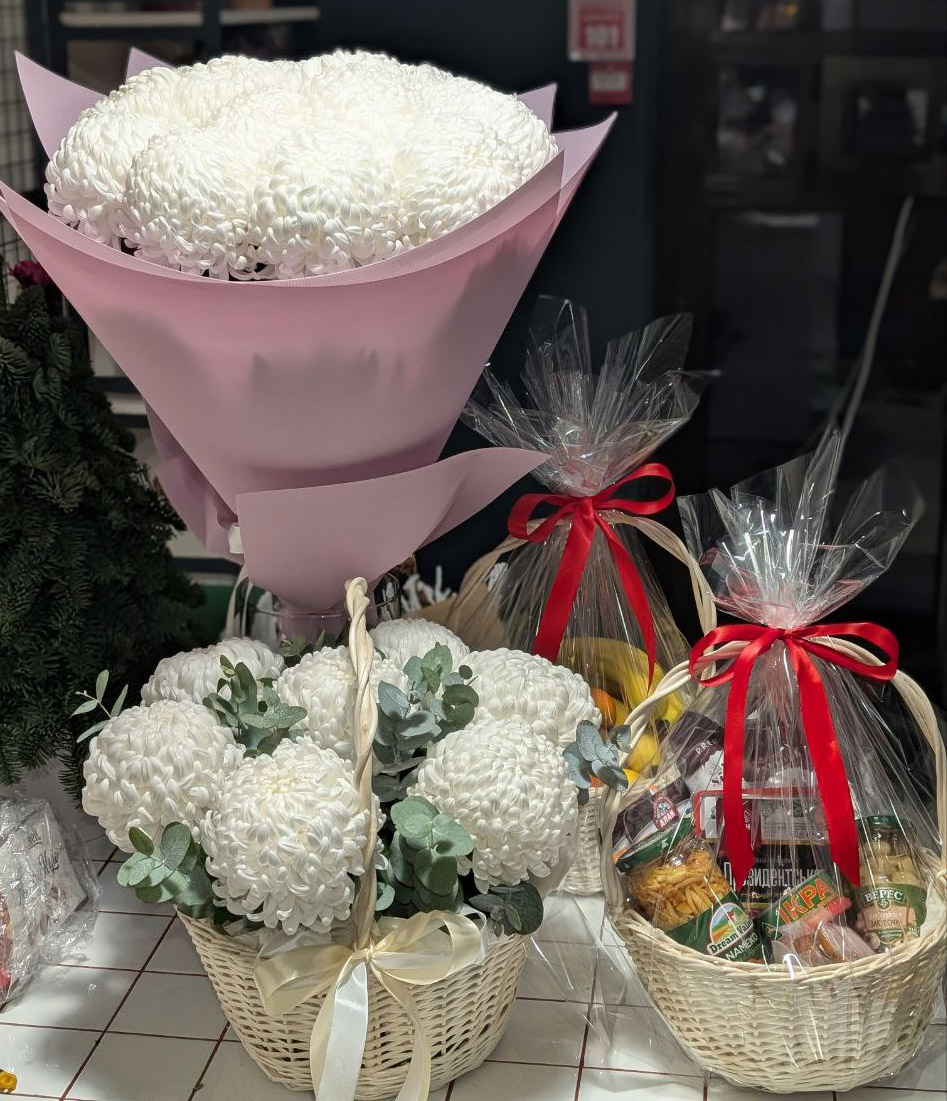 Подарочная корзина или коробка (по наличию), декор по сезону и случаю, оформление, подарочная упаковка.