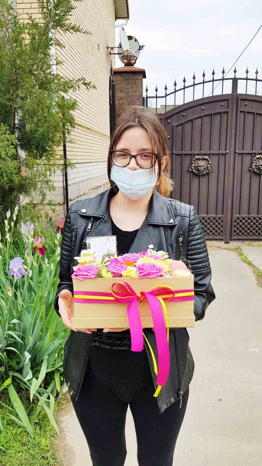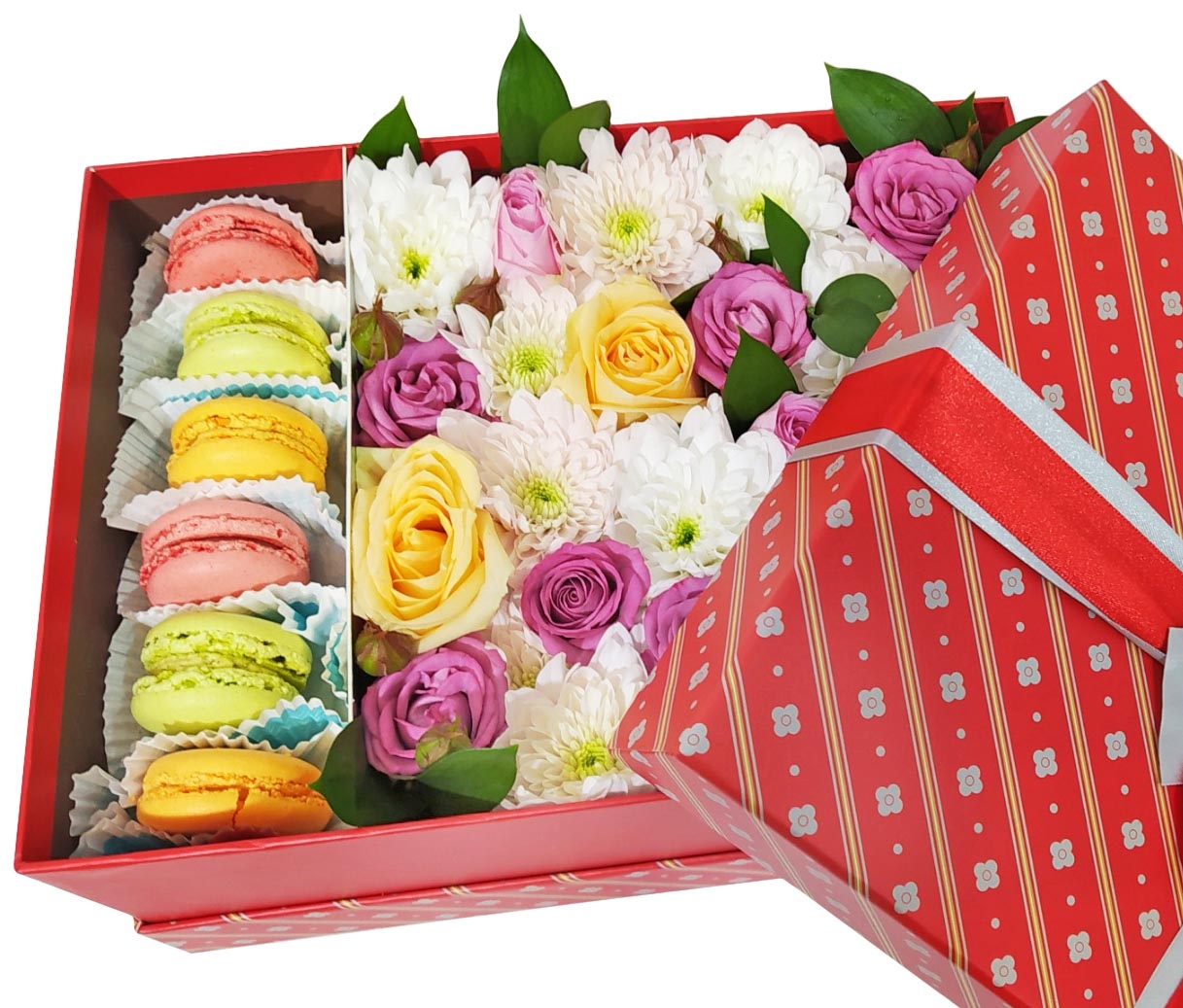 Большая Подарочная коробка с цветами и Макаронс