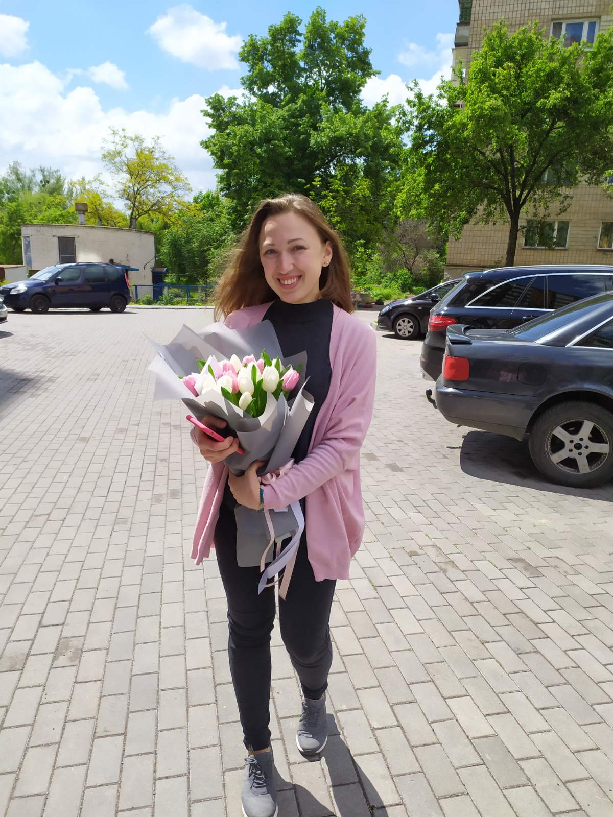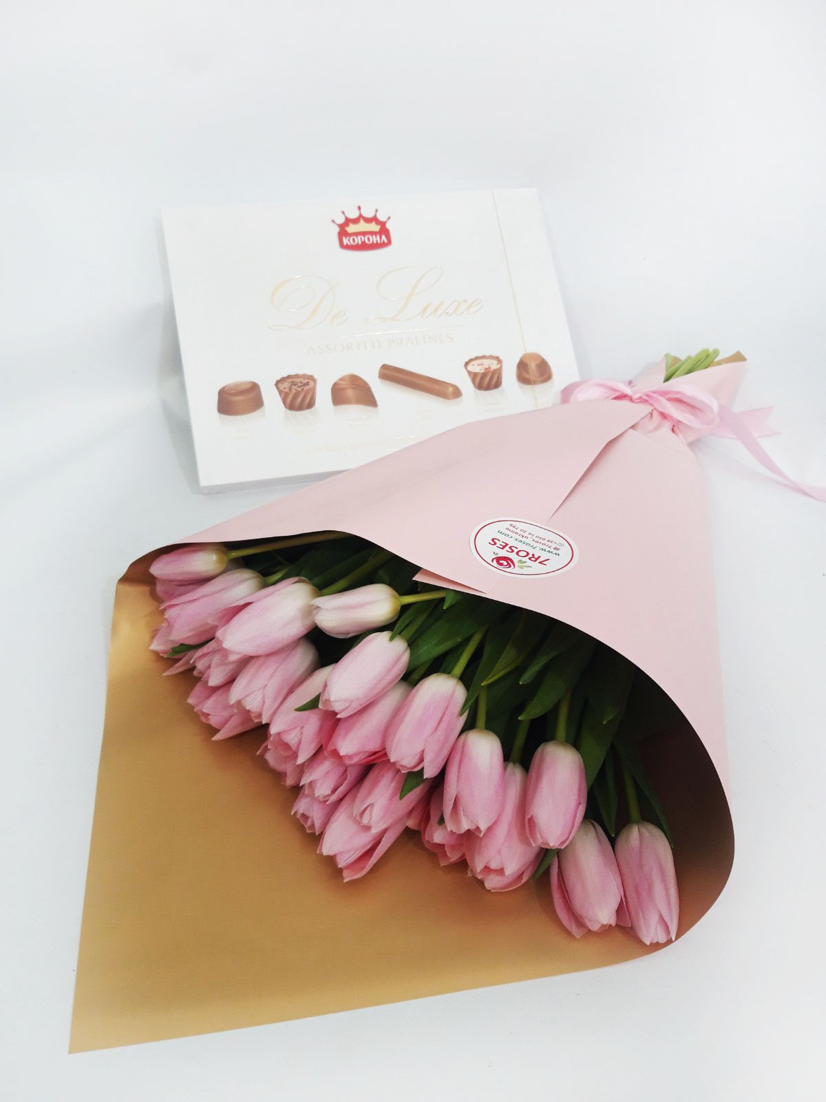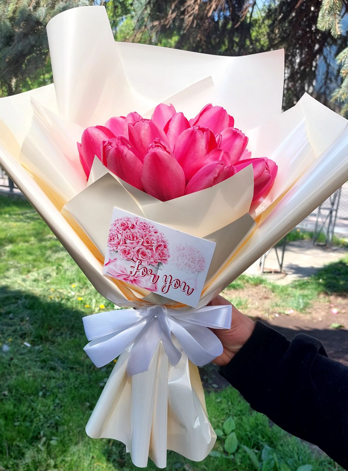 Фото наших получателей цветов и подарков - Розовые тюльпаны. Букеты от 11 до 101