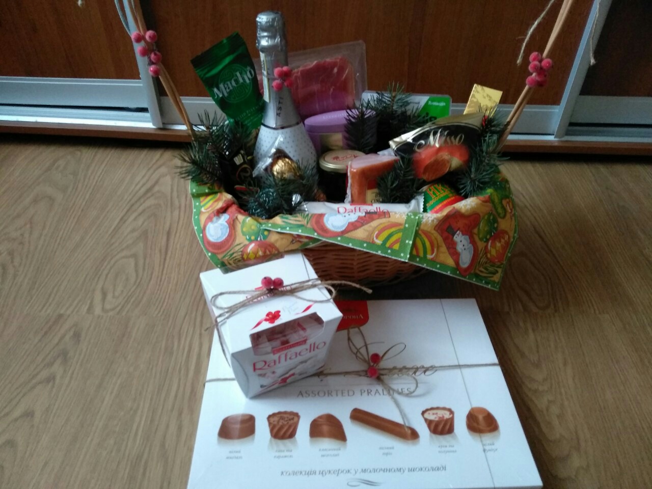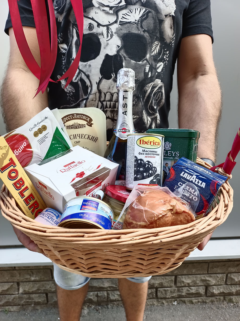 Фото наших получателей цветов и подарков - Большая корзина деликатесов