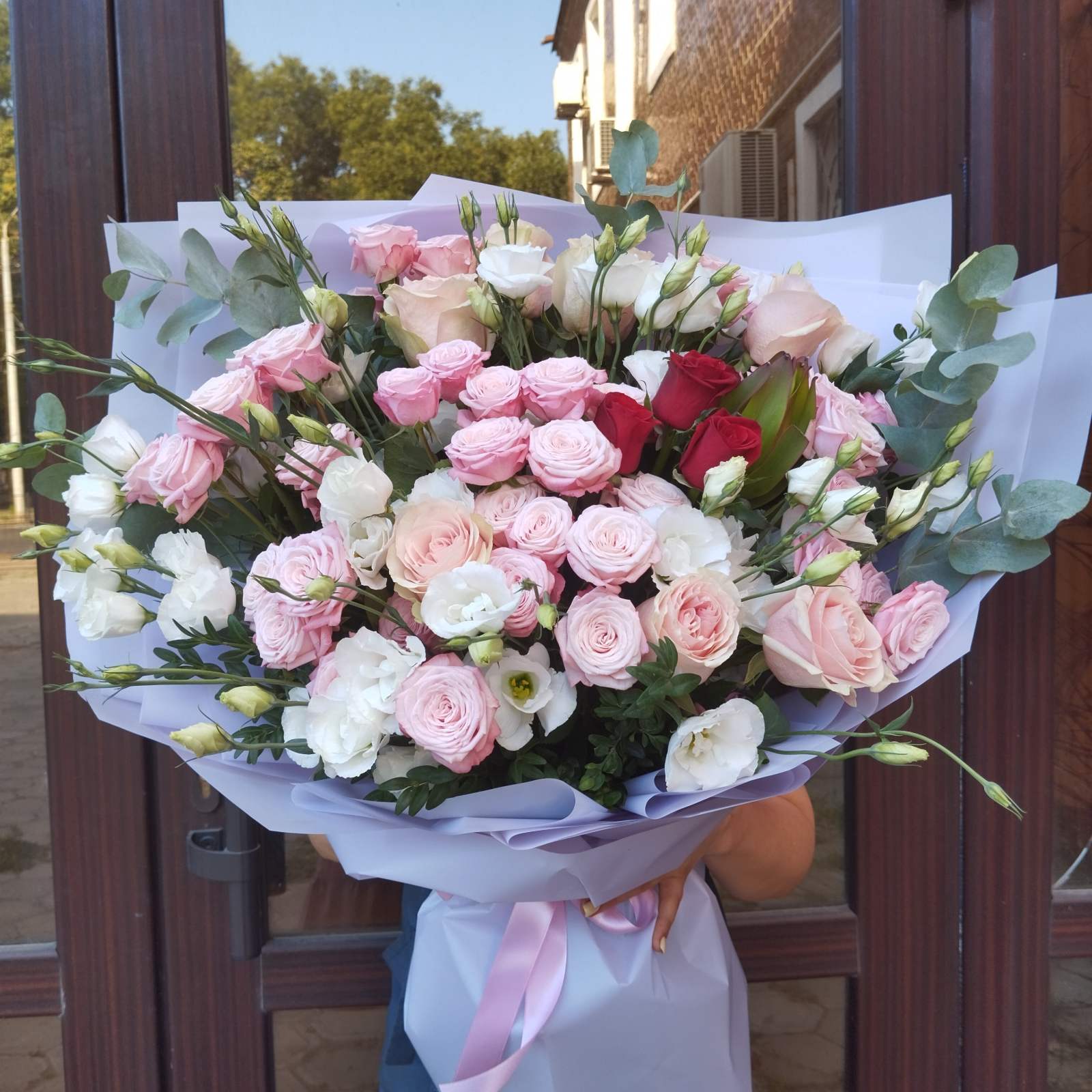 Красивая, нежная упаковка, атласный бант