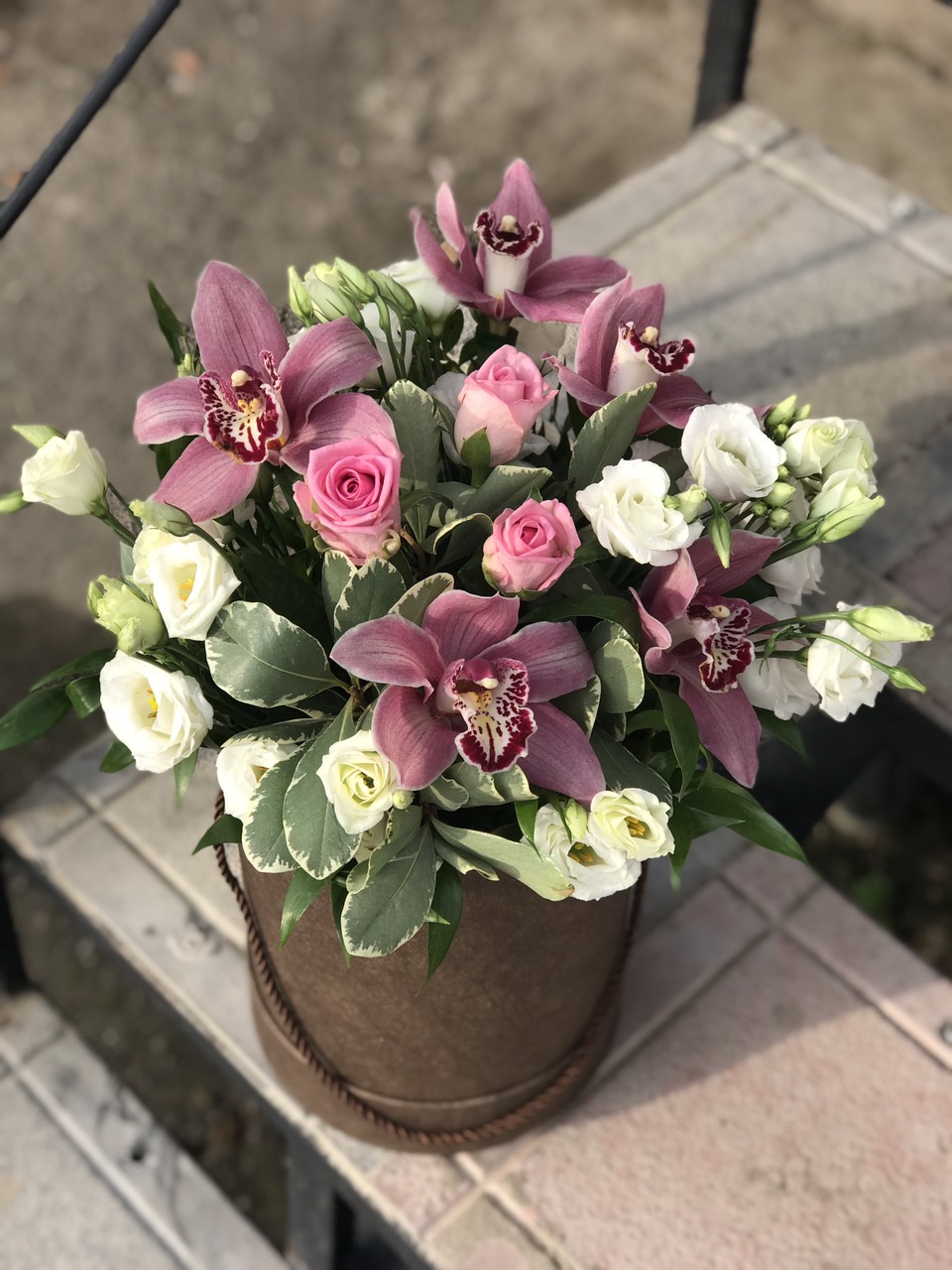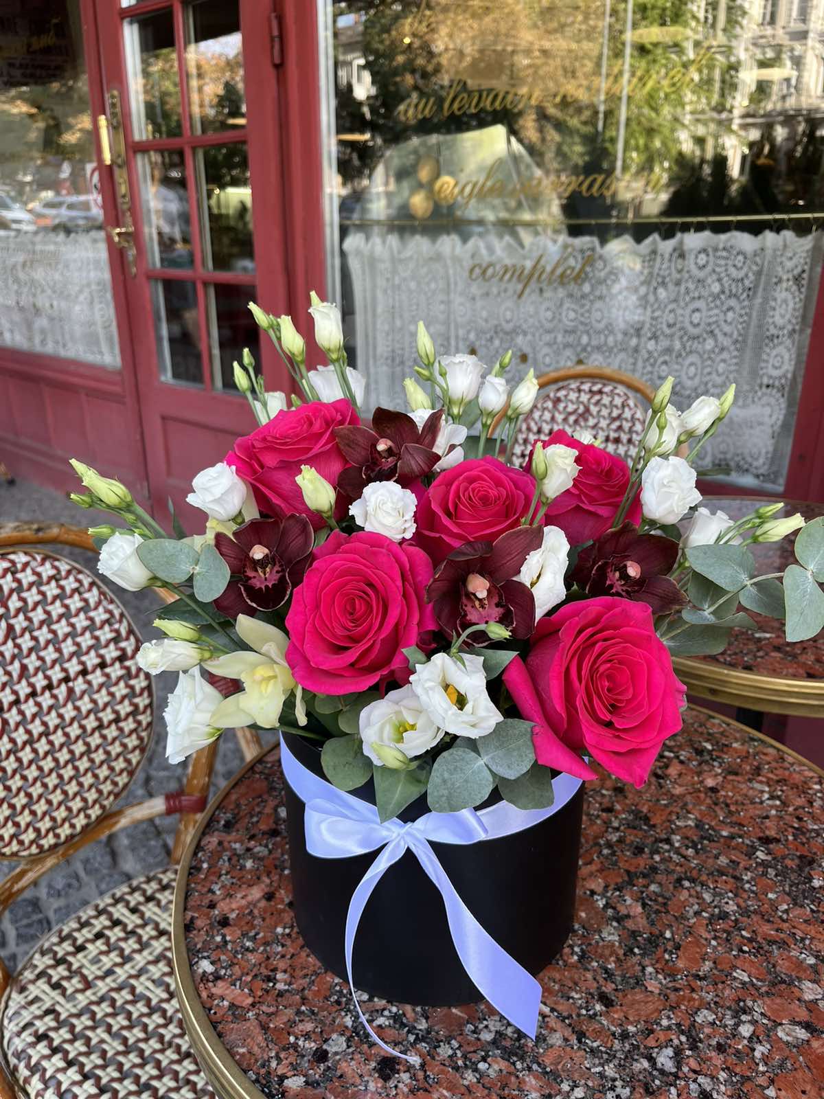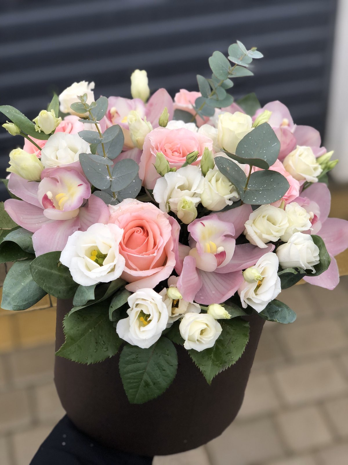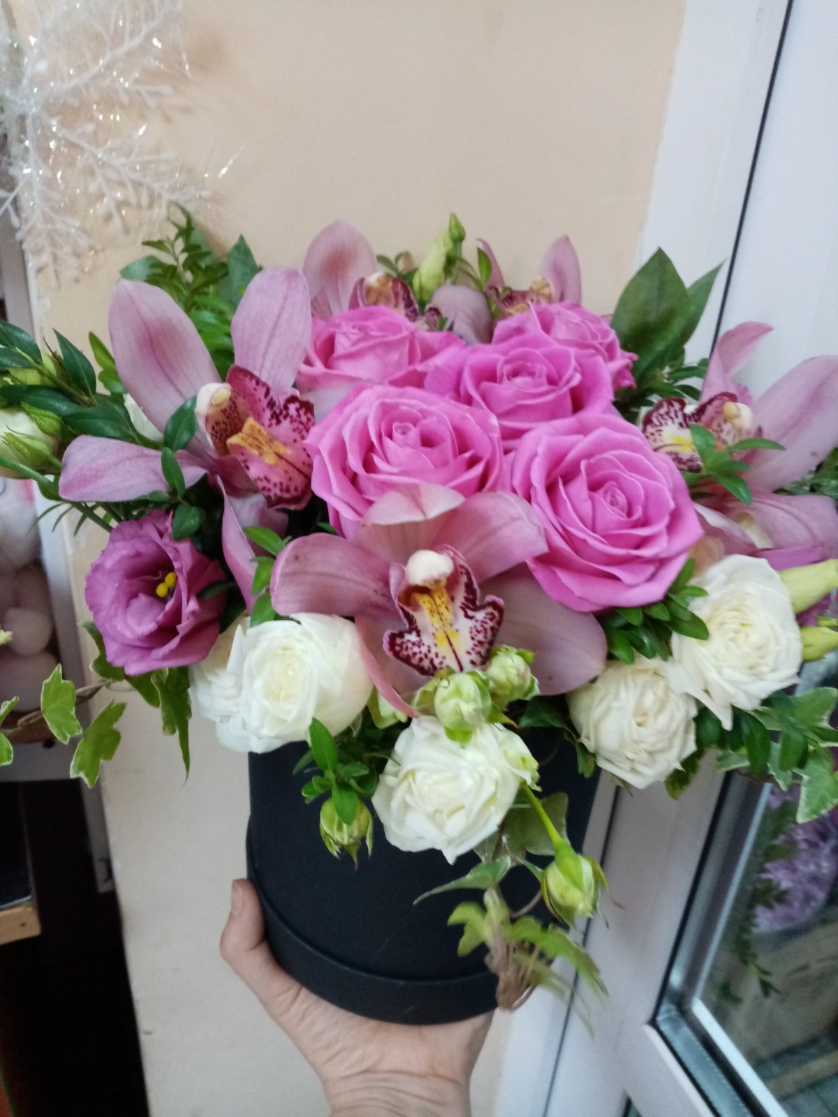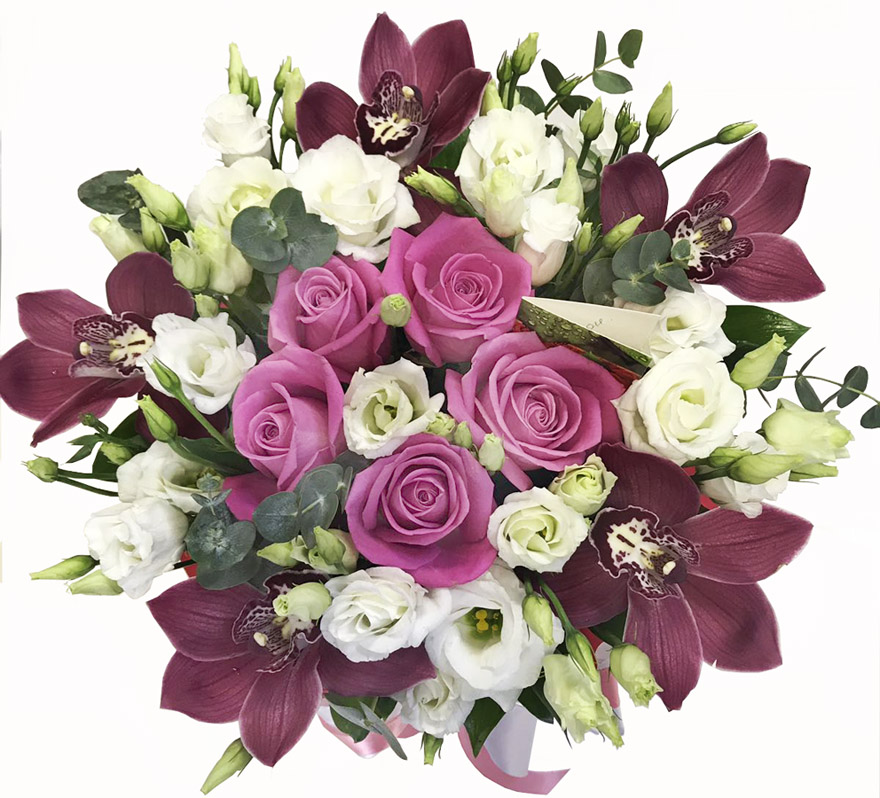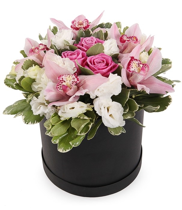 Одна из самых изысканных и эффектных композиций в шляпной коробке.