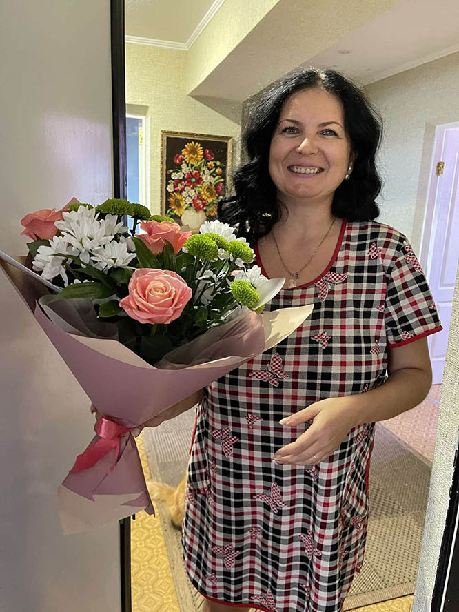Miss Ilona Yura was very happy to receive the flowers.