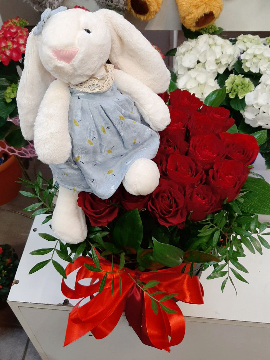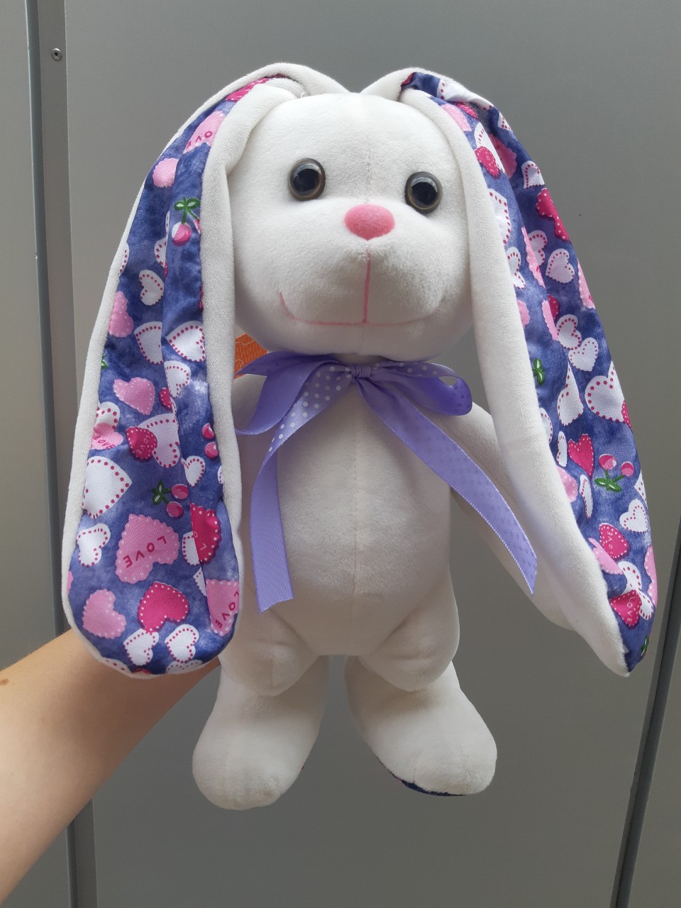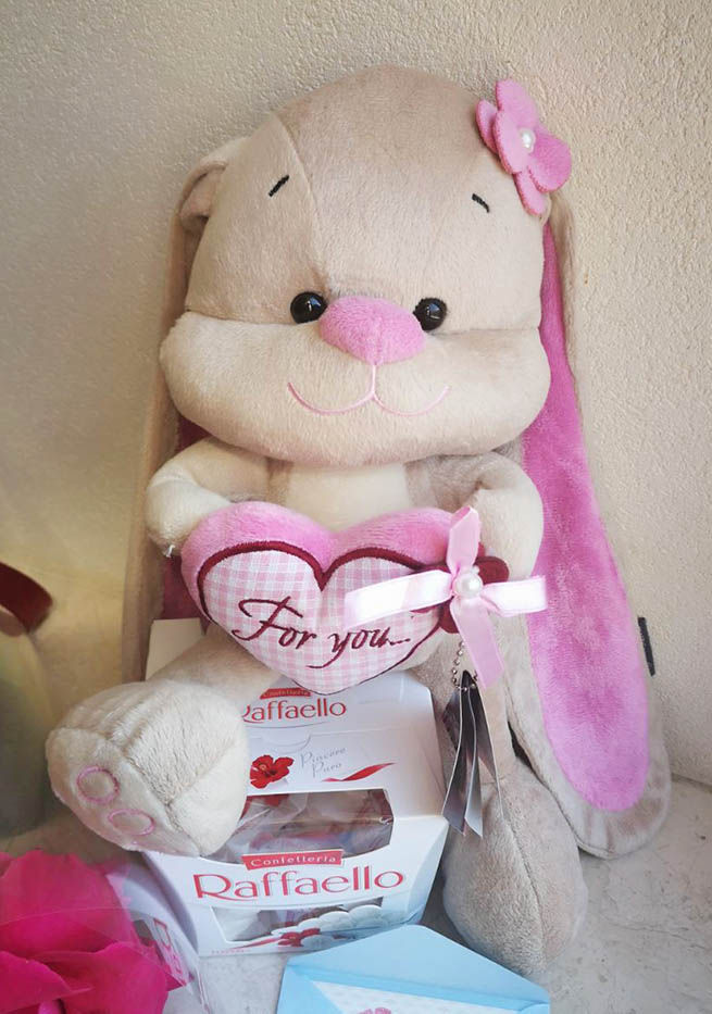 Кролик будет ростом 20-30 см, но на вид может немного отличаться, это зависит от того, в каком городе находится ваш получатель. Но в любом случае мы постараемся подобрать максимально похожего, и уж точно не менее очаровательного! Цвет и форма игрушки может варьировать в зависимости от наличия