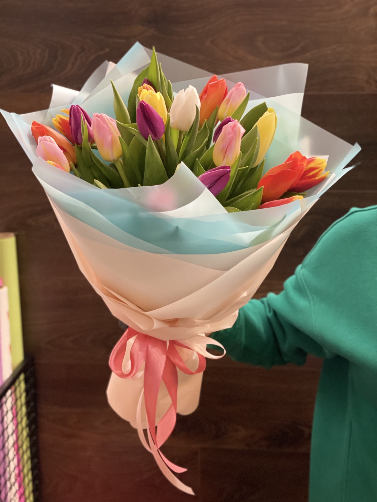 15 x тюльпанов разного цвета (как на фото)
