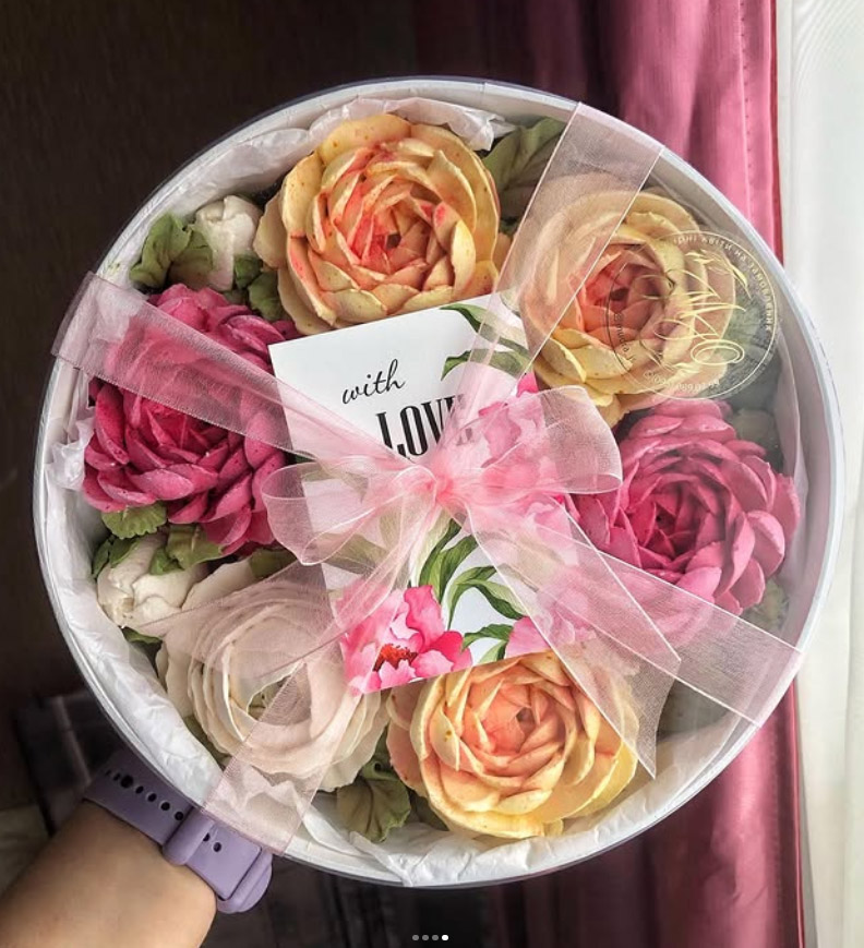 Zephyr flower box could be a great alternative to a usual Cake or a box of chocolates. Zephyr is a loved sweet here in Ukraine, but what we normally could see is a simple Zephyr forms like forms of Marshmallow. However the skills of our confectioners are constantly improving and now they have learned to make beautiful flowers from Zephyr, to compose a really looking bouquets and flower gift box arrangements.