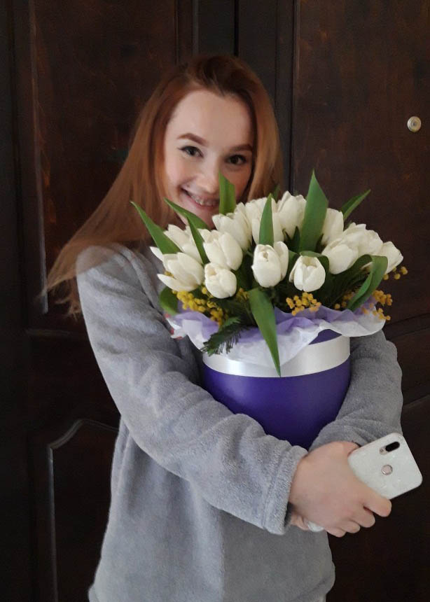 IMPORTANT: Such arrangement is available apprx from January-February to March-April - at the tulips blossoming season.