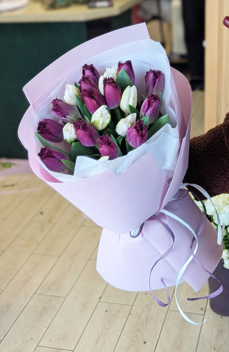 The bouquet that is shown at our photo has 101 tulips, but we offer a choice of different number of them. Please, make your choice!
