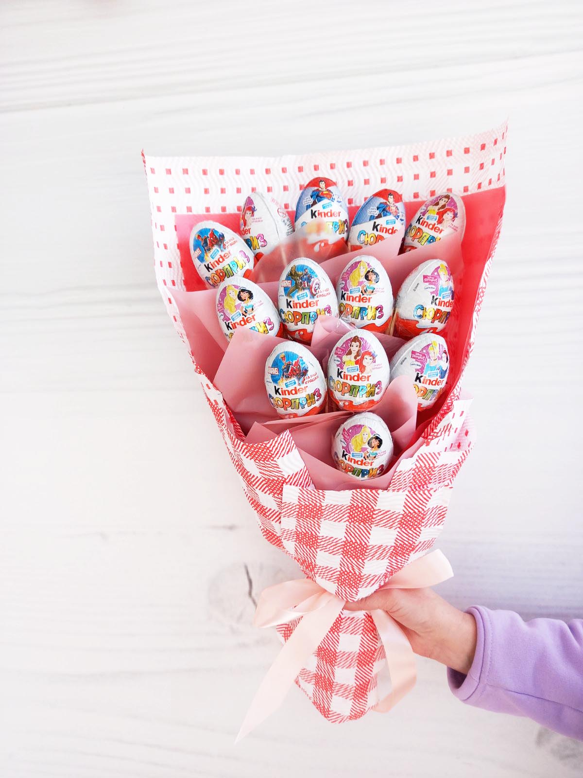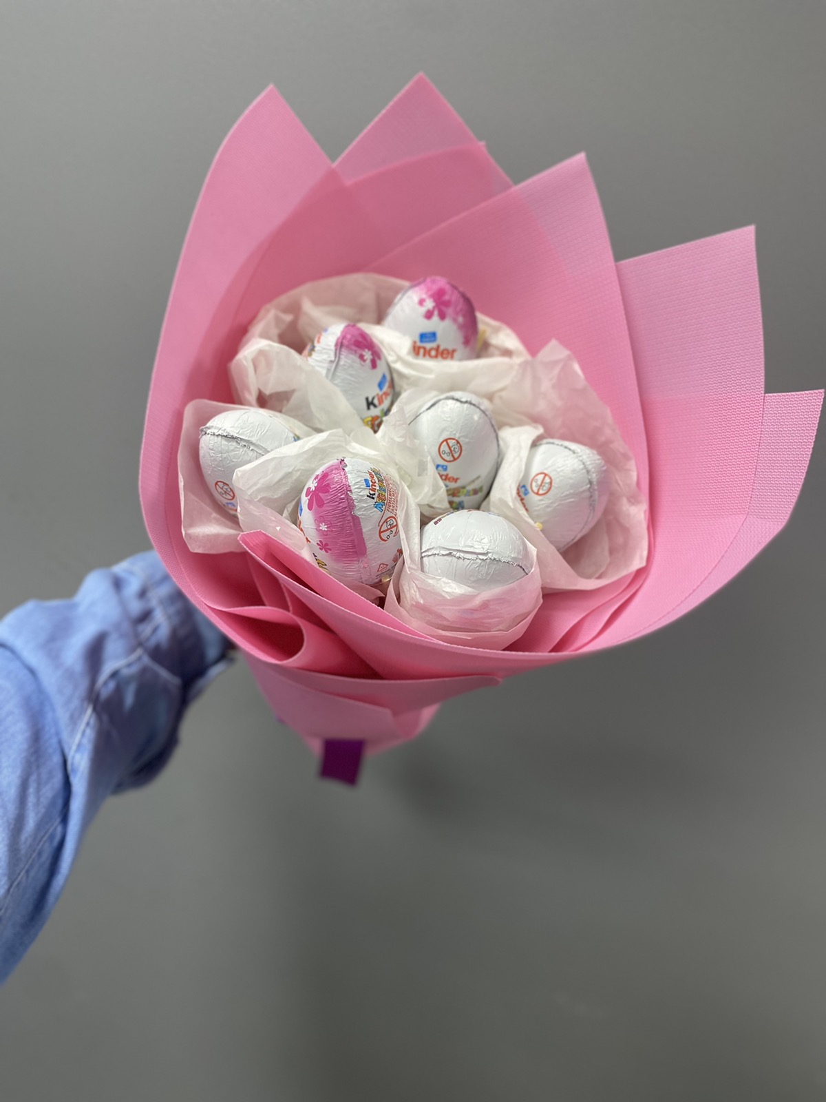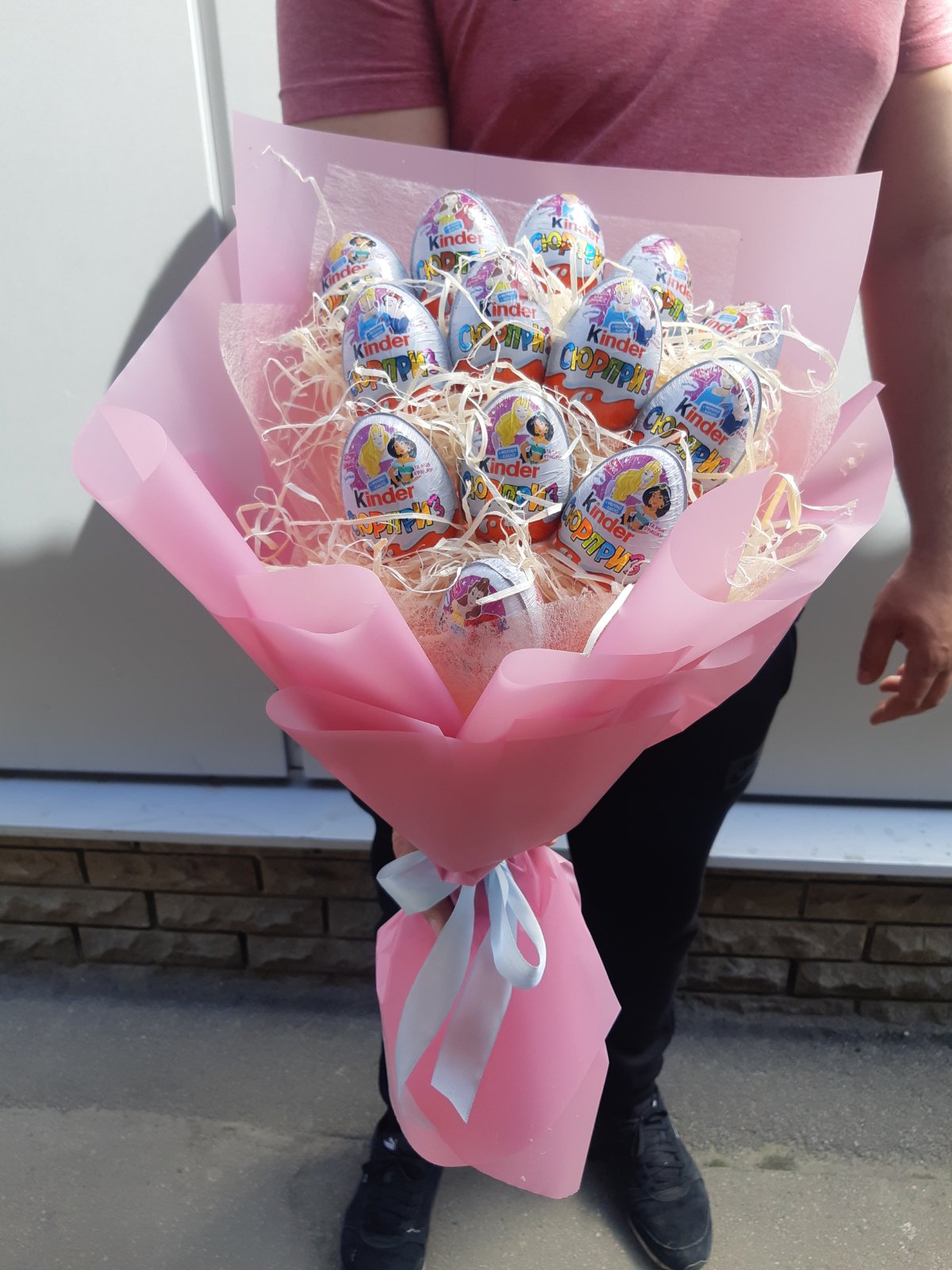 На нашому фото представлений букет з 19 шоколадних яєць. Але ви можете вибрати інший його розмір за вашим бажанням.