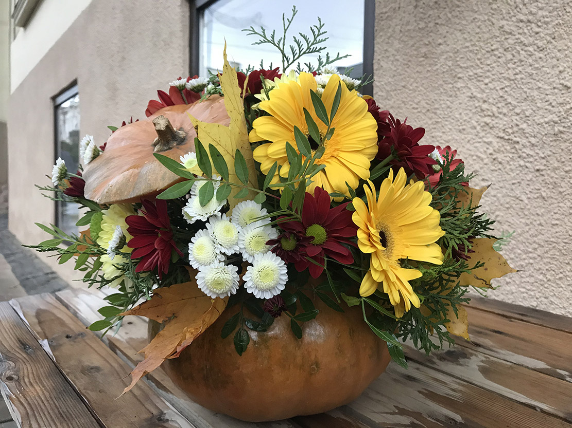Такі композиції, вазою для яких служить справжня гарбуз, досить нові й незвичні для України. Тому одержувачі такого подарунка незмінно бувають здивовані і захоплені.