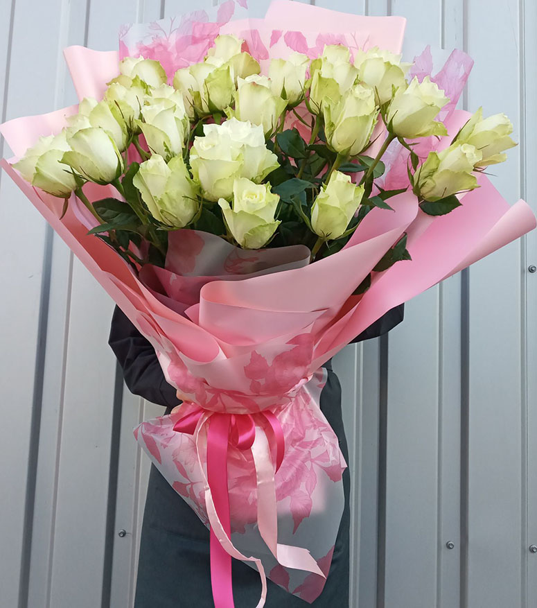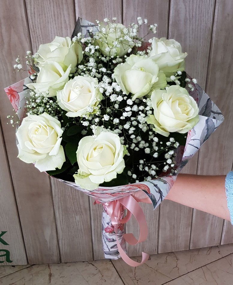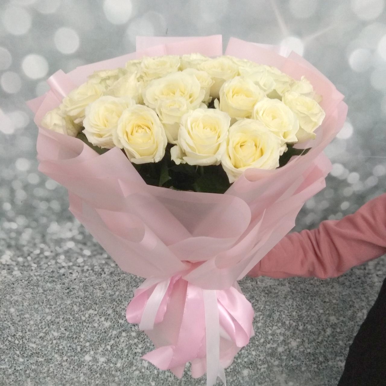 На цій сторінці можна замовити букет з білосніжних троянд висотою стебла 60-70см . В букет також увійдуть гілки декоративної зелені і він буде з великим смаком упакований в підходящу для цього букета папір, сітку, целофан, або органзу. Флорист-дизайнер прийме найкраще в цьому сенсі рішення