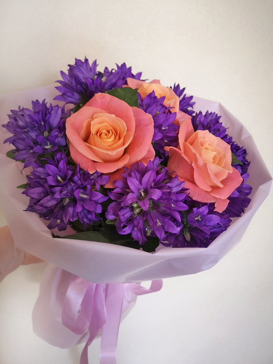 - 3 троянди - 7 ірисів, або 4 гілки еустоми (це 12-15 квіток + безліч бутонів!) або інші сині квіти на сплачену суму