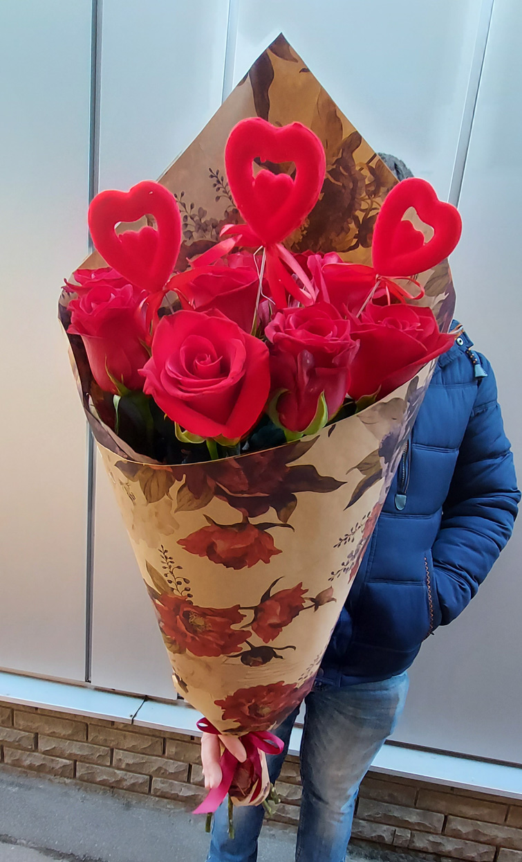ATTENTION, pls! Special hearts for bouquets might be unavailable at some periods at our flowers shop. At such case we'll add any other heart as substitution, for example: heart shaped balloon, or chocolate heart, etc.